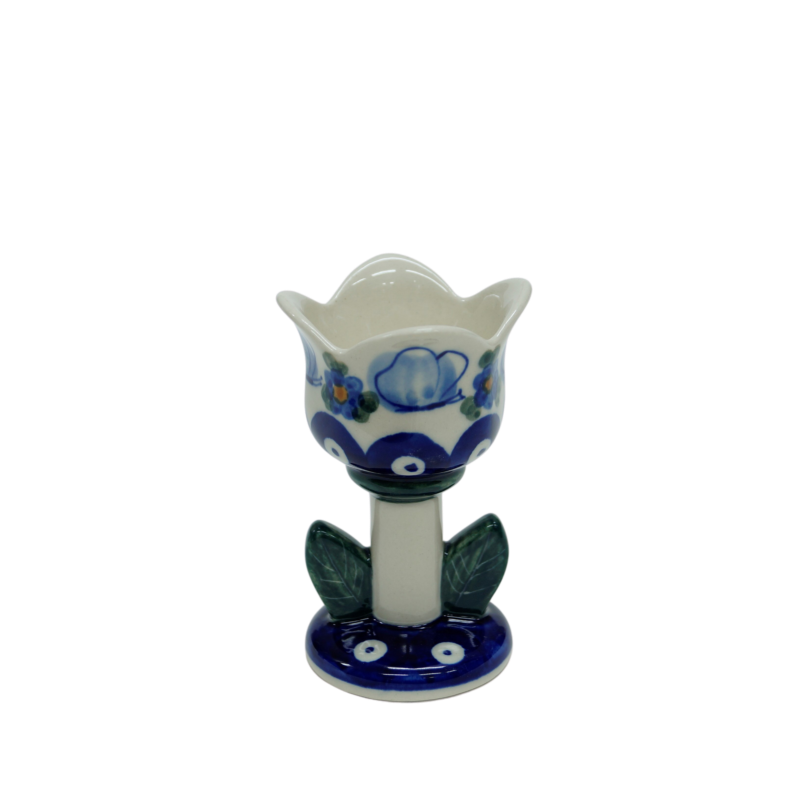 Ceramiczny świecznik w kształcie tulipana, oryginalny wyrób ceramiki użytkowej z Bolesławca. Świecznik tulipan może być używany z podgrzewaczem tealight bądź z tradycyjną świeczką stojącą stołową.