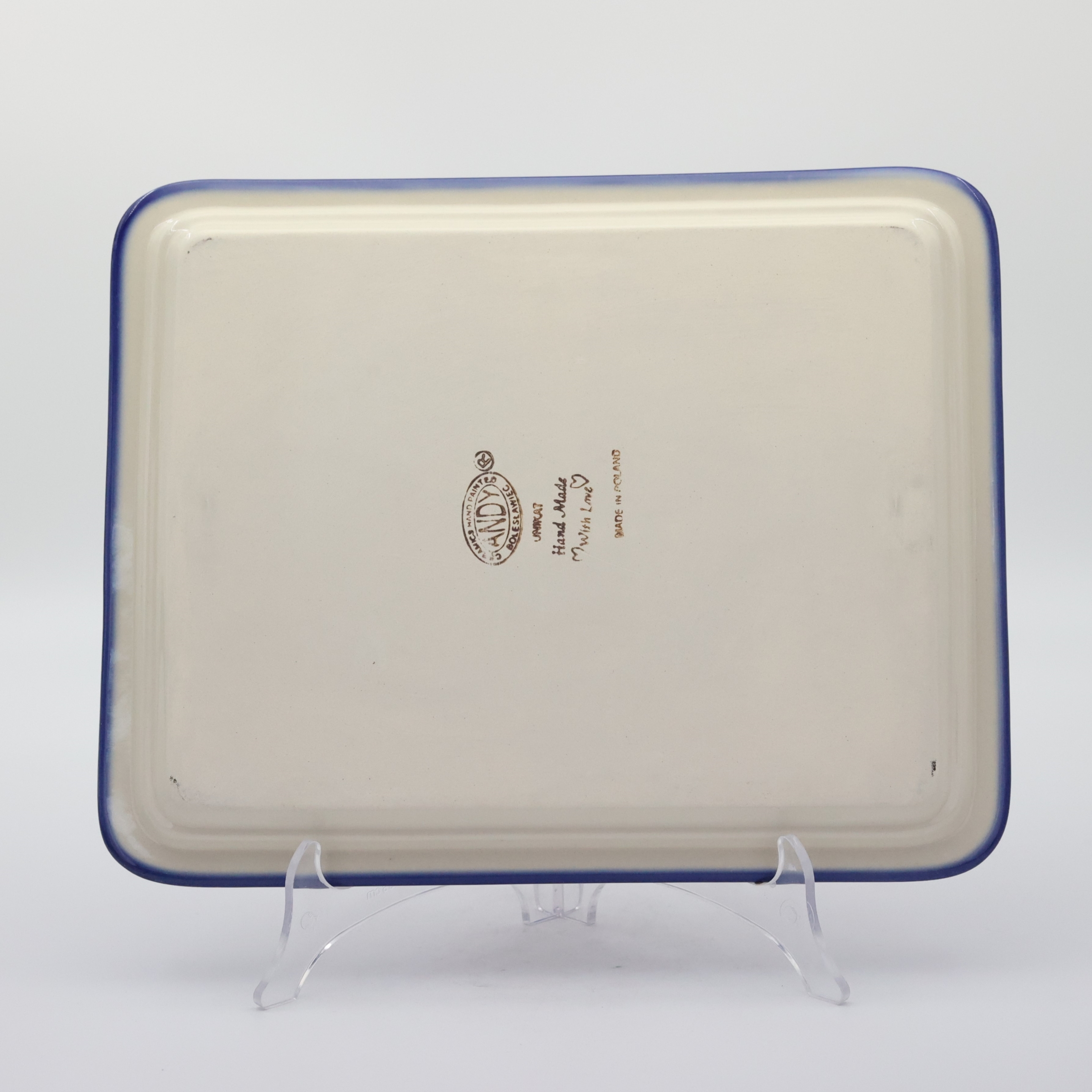 Taca do serwowania potraw to ręcznie malowany wyrób oryginalnej ceramiki bolesławieckiej. Każda dekoracja ceramiki artystycznej z naszej rodzinnej manufaktury powstała z najwyższą dbałością o detale i wysoką jakość i trwałość naczyń.