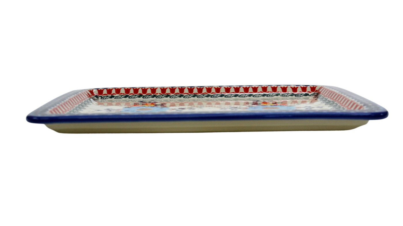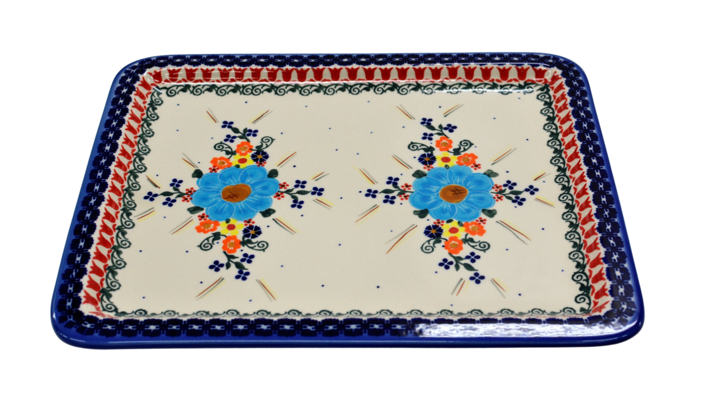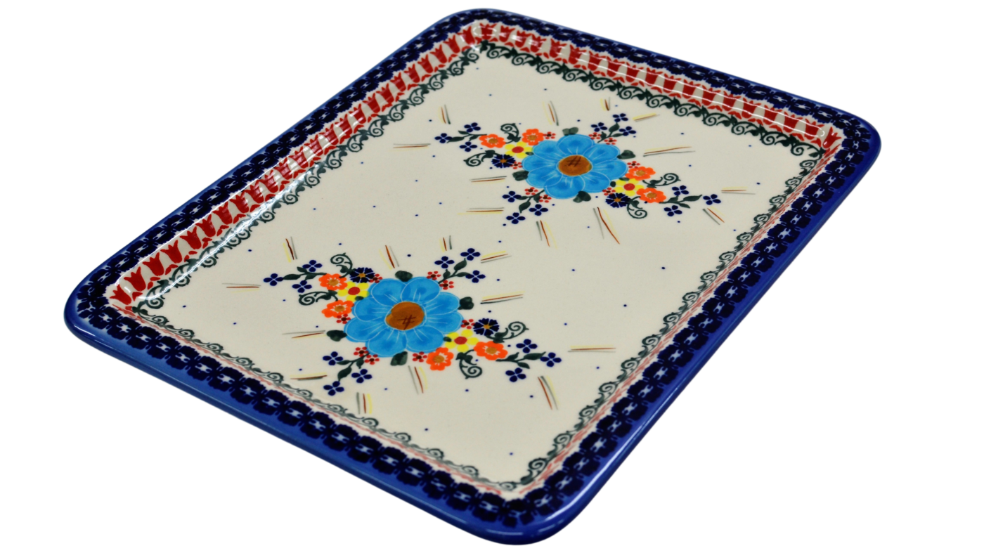 Taca do serwowania potraw to ręcznie malowany wyrób oryginalnej ceramiki bolesławieckiej. Każda dekoracja ceramiki artystycznej z naszej rodzinnej manufaktury powstała z najwyższą dbałością o detale i wysoką jakość i trwałość naczyń.