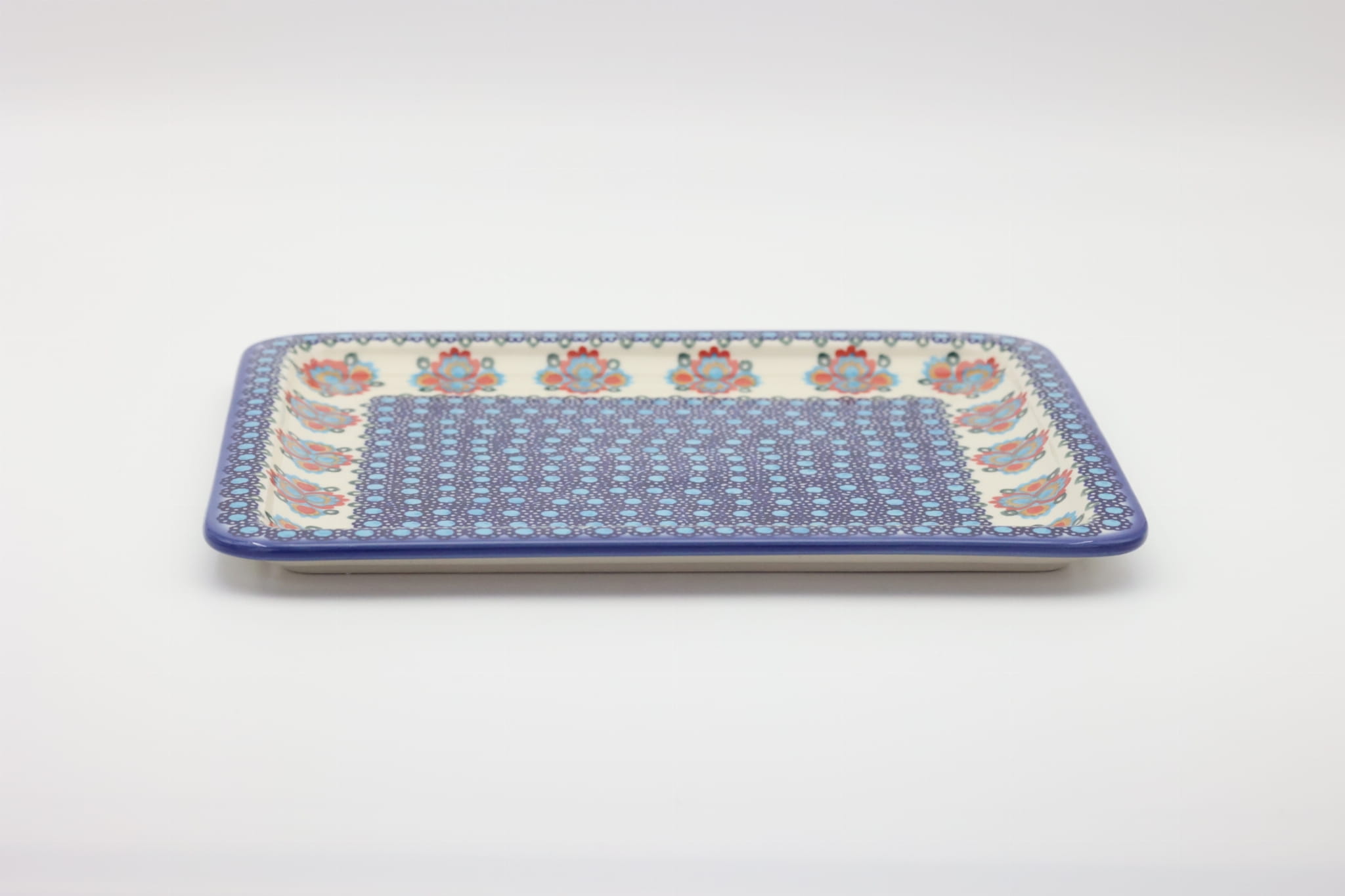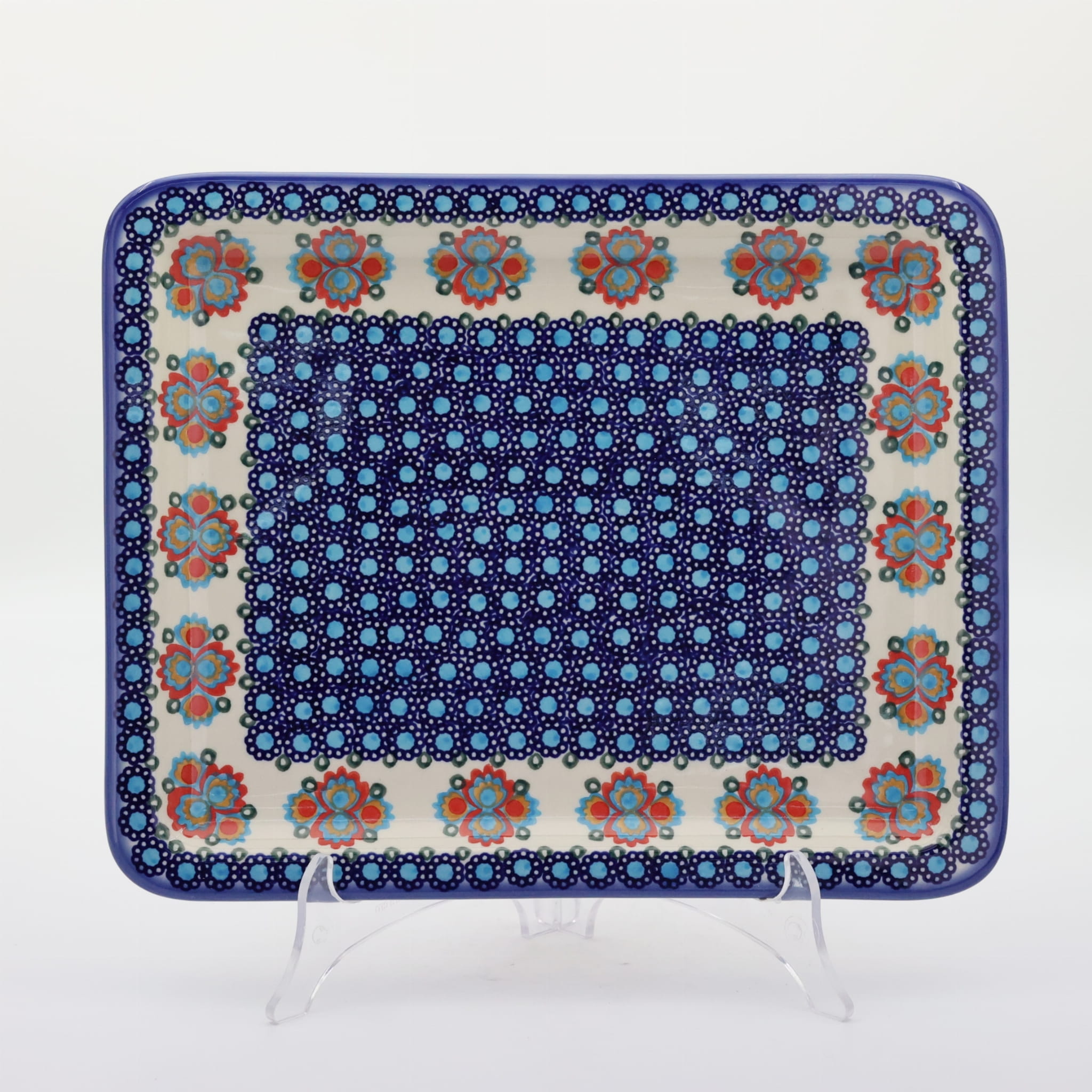 Taca do serwowania potraw to ręcznie malowany wyrób oryginalnej ceramiki bolesławieckiej. Każda dekoracja ceramiki artystycznej z naszej rodzinnej manufaktury powstała z najwyższą dbałością o detale i wysoką jakość i trwałość naczyń.