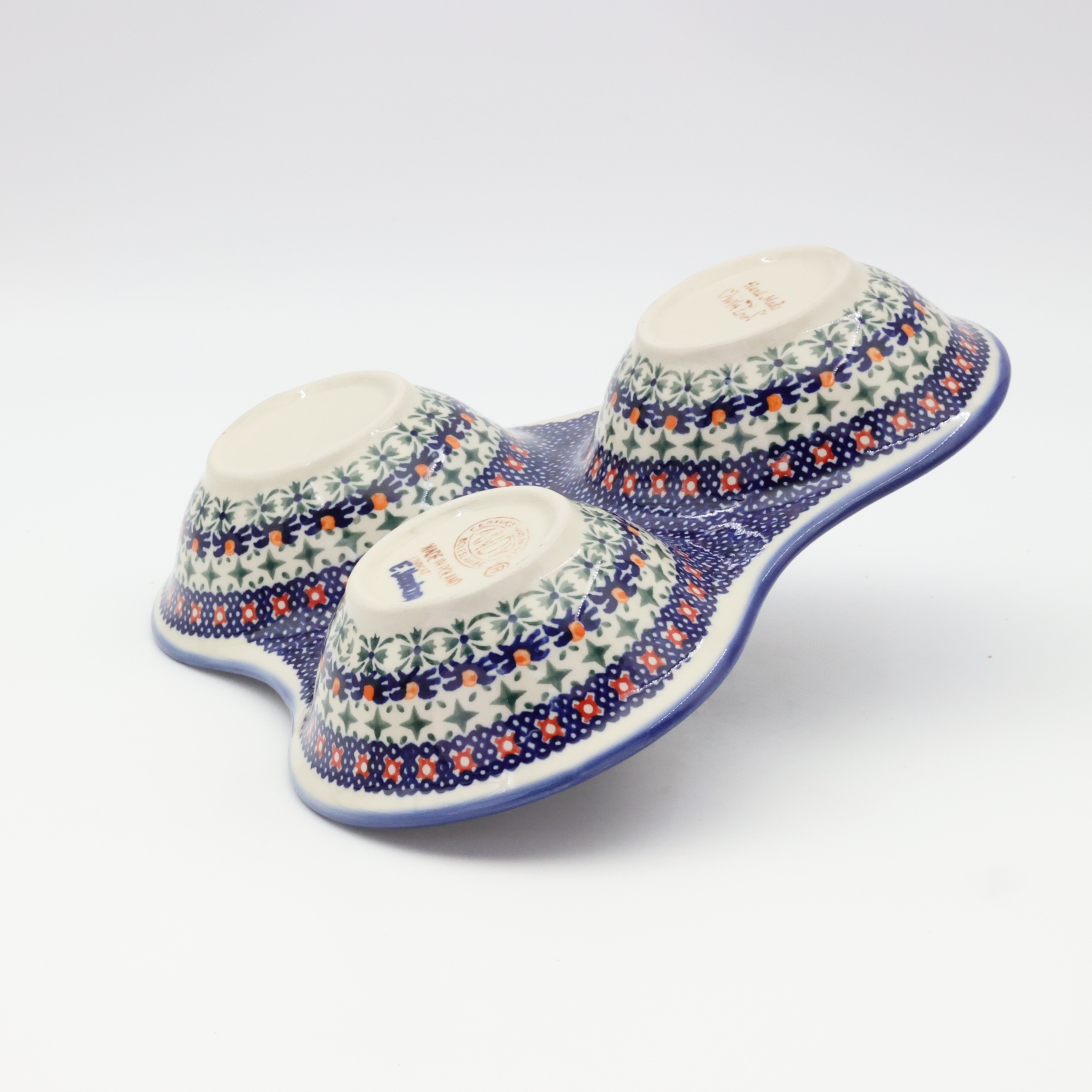 Tacka do serwowania, potrójna, stworzona zostało jako naczynie ceramiczne do podawania przypraw, przecież w naszych domach gotujemy potrawy i smakujemy smaków kuchni z całego świata a dodatkowo mieszamy smaki i przyprawy tworząc prawdziwe kulinarne cuda.