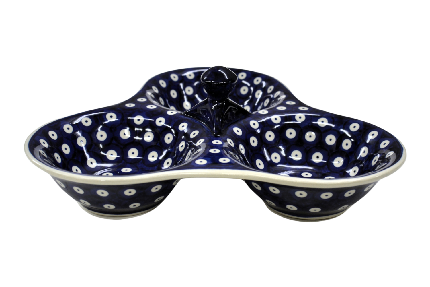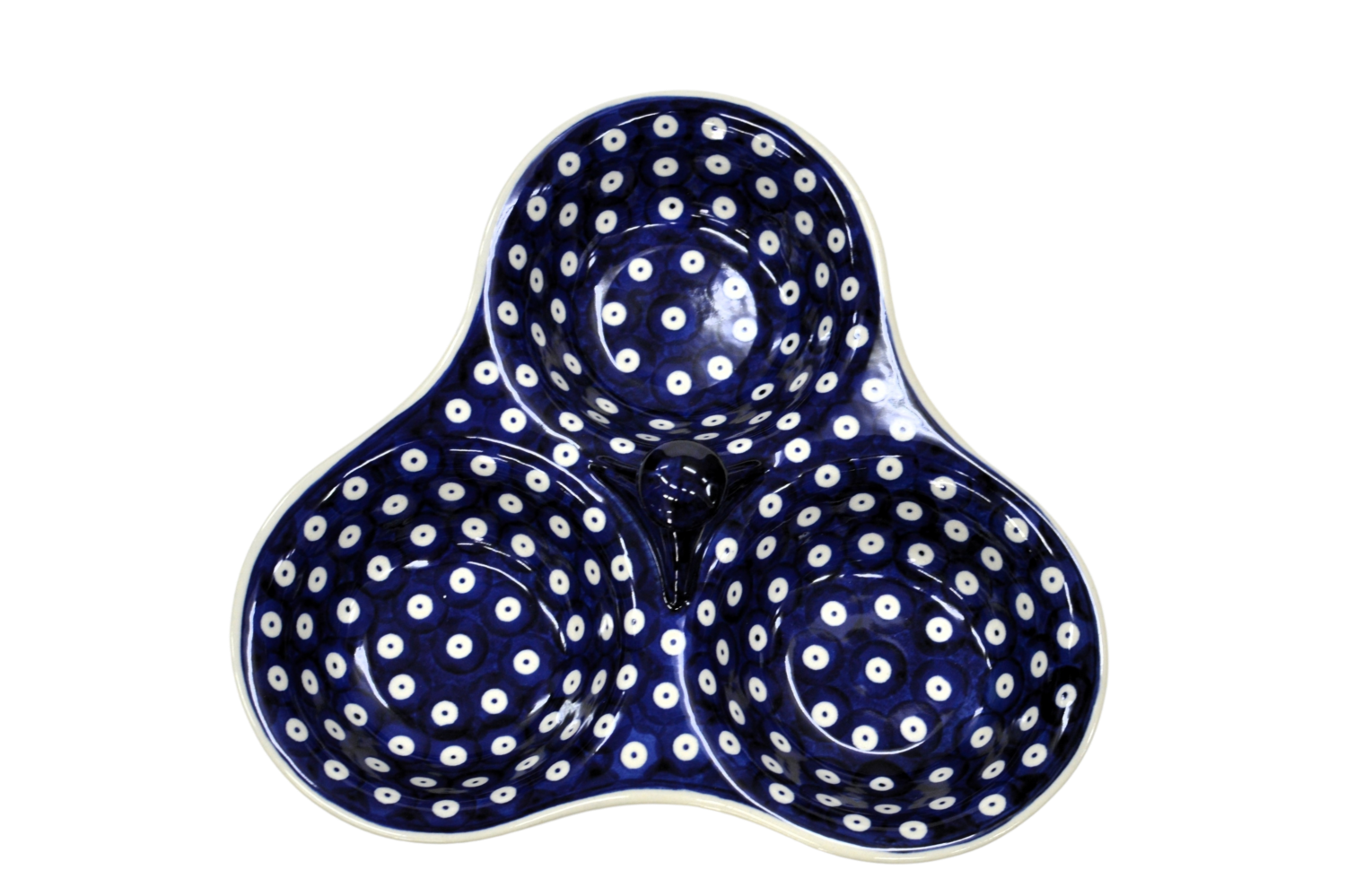 Tacka do serwowania, potrójna, stworzona zostało jako naczynie ceramiczne do podawania przypraw, przecież w naszych domach gotujemy potrawy i smakujemy smaków kuchni z całego świata a dodatkowo mieszamy smaki i przyprawy tworząc prawdziwe kulinarne cuda.