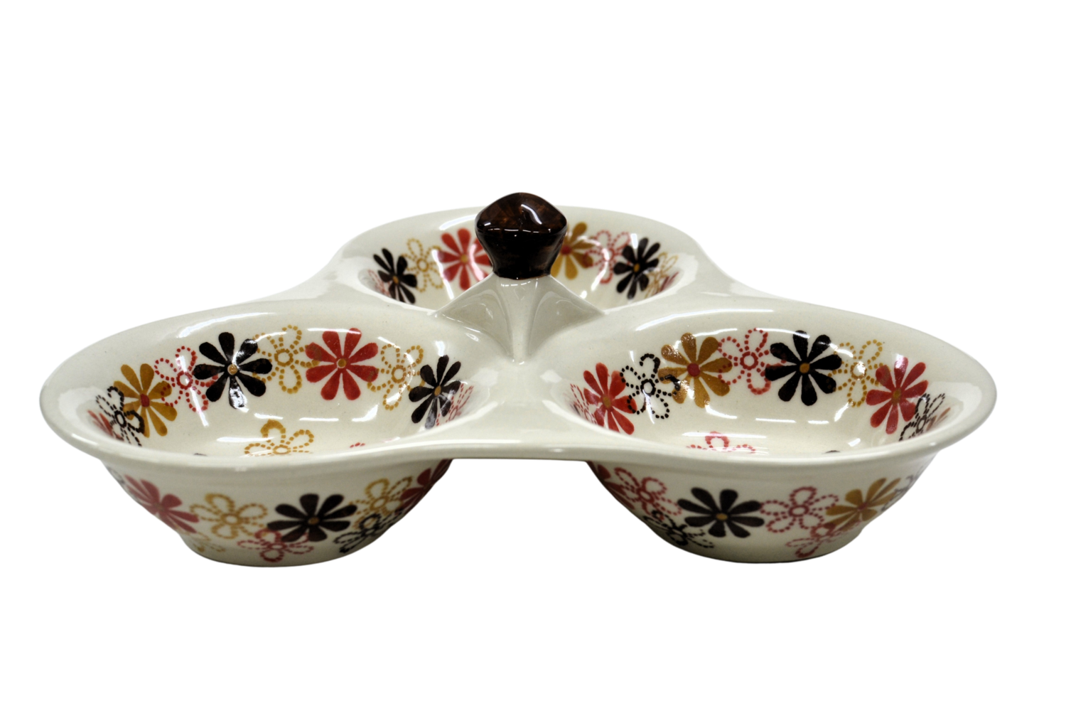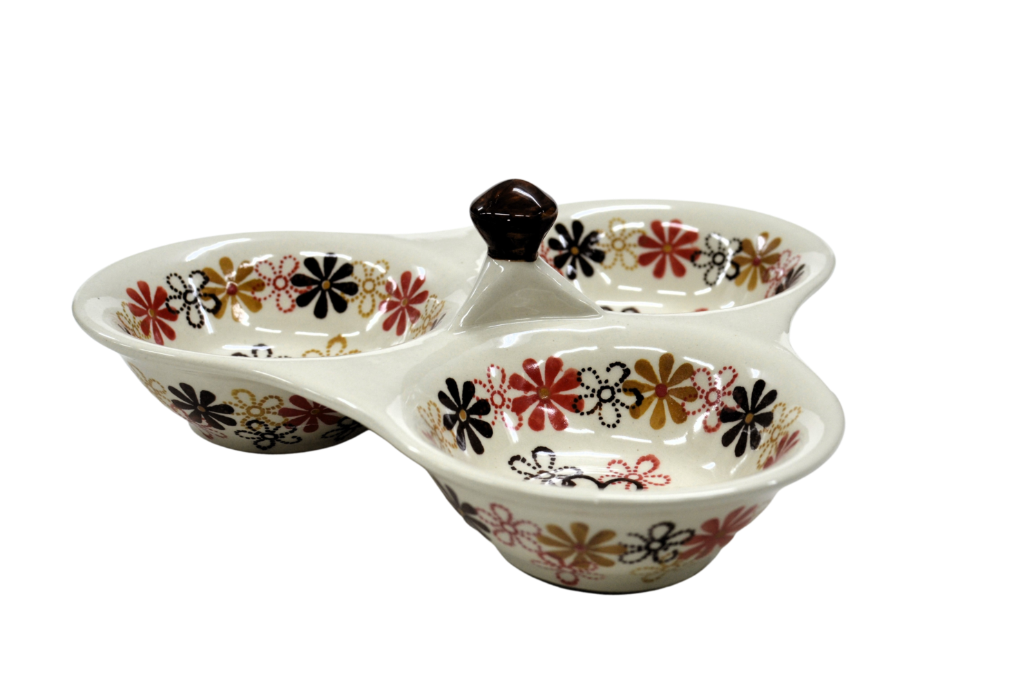 Tacka do serwowania, potrójna, stworzona zostało jako naczynie ceramiczne do podawania przypraw, przecież w naszych domach gotujemy potrawy i smakujemy smaków kuchni z całego świata a dodatkowo mieszamy smaki i przyprawy tworząc prawdziwe kulinarne cuda.