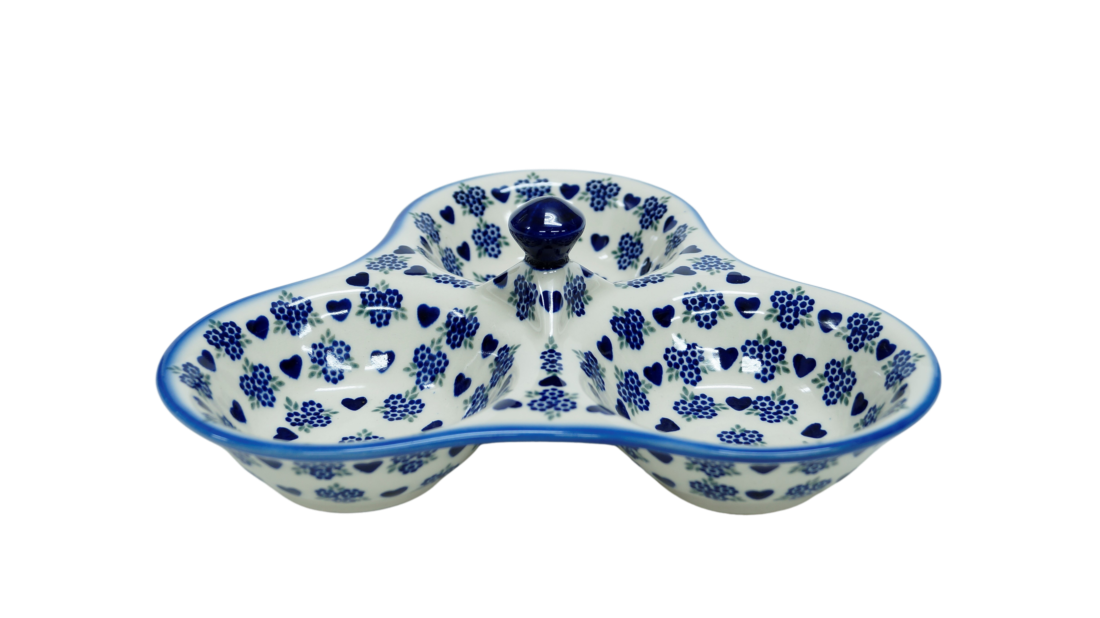 Tacka do serwowania, potrójna, stworzona zostało jako naczynie ceramiczne do podawania przypraw, przecież w naszych domach gotujemy potrawy i smakujemy smaków kuchni z całego świata a dodatkowo mieszamy smaki i przyprawy tworząc prawdziwe kulinarne cuda.