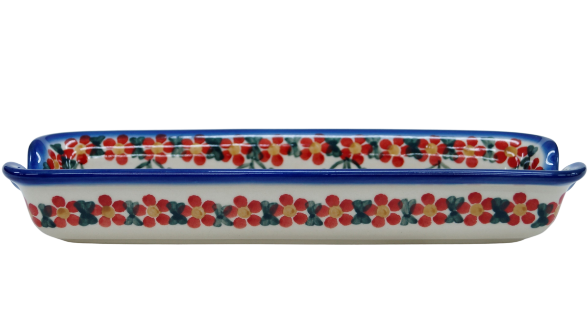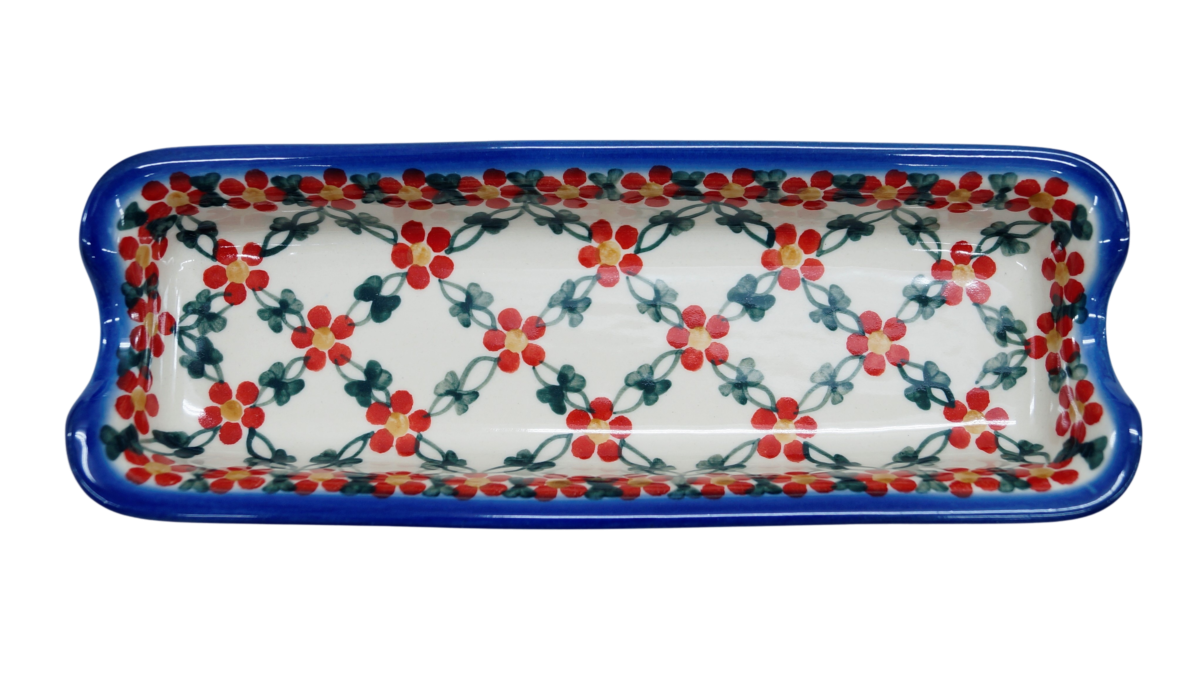 Kukurydza gotowana, kukurydza gotowana… w folii podawana… na szczęście wyszliśmy naprzeciw Państwa oczekiwaniom i stworzyliśmy produkt niezbędny do podawania kolby gotowanej kukurydzy. Tacka ma specjalne wycięcia po bocznych stronach aby umożliwić ułożenie całej kolby kukurydzy i uniknąć poparzenia dłoni. Zagłębienie tacki umożliwia dodanie do spożycia soli, pieprzu lub masła, które nie spłynie na ręce czy stół na którym stoi naczynie ceramiczne.