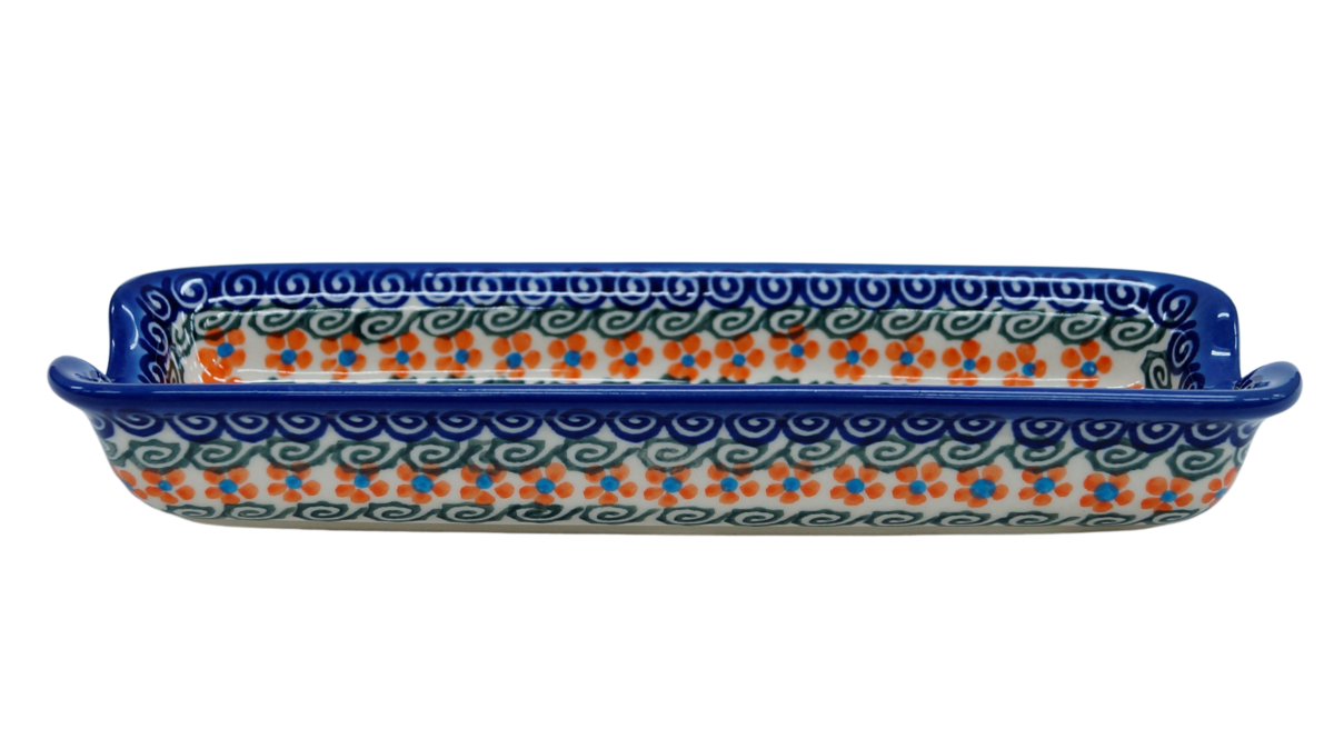 Kukurydza gotowana, kukurydza gotowana… w folii podawana… na szczęście wyszliśmy naprzeciw Państwa oczekiwaniom i stworzyliśmy produkt niezbędny do podawania kolby gotowanej kukurydzy. Tacka ma specjalne wycięcia po bocznych stronach aby umożliwić ułożenie całej kolby kukurydzy i uniknąć poparzenia dłoni. Zagłębienie tacki umożliwia dodanie do spożycia soli, pieprzu lub masła, które nie spłynie na ręce czy stół na którym stoi naczynie ceramiczne.