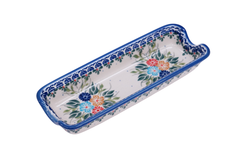 Kukurydza gotowana, kukurydza gotowana… w folii podawana… na szczęście wyszliśmy naprzeciw Państwa oczekiwaniom i stworzyliśmy produkt niezbędny do podawania kolby gotowanej kukurydzy. Tacka ma specjalne wycięcia po bocznych stronach aby umożliwić ułożenie całej kolby kukurydzy i uniknąć poparzenia dłoni. Zagłębienie tacki umożliwia dodanie do spożycia soli, pieprzu lub masła, które nie spłynie na ręce czy stół na którym stoi naczynie ceramiczne.