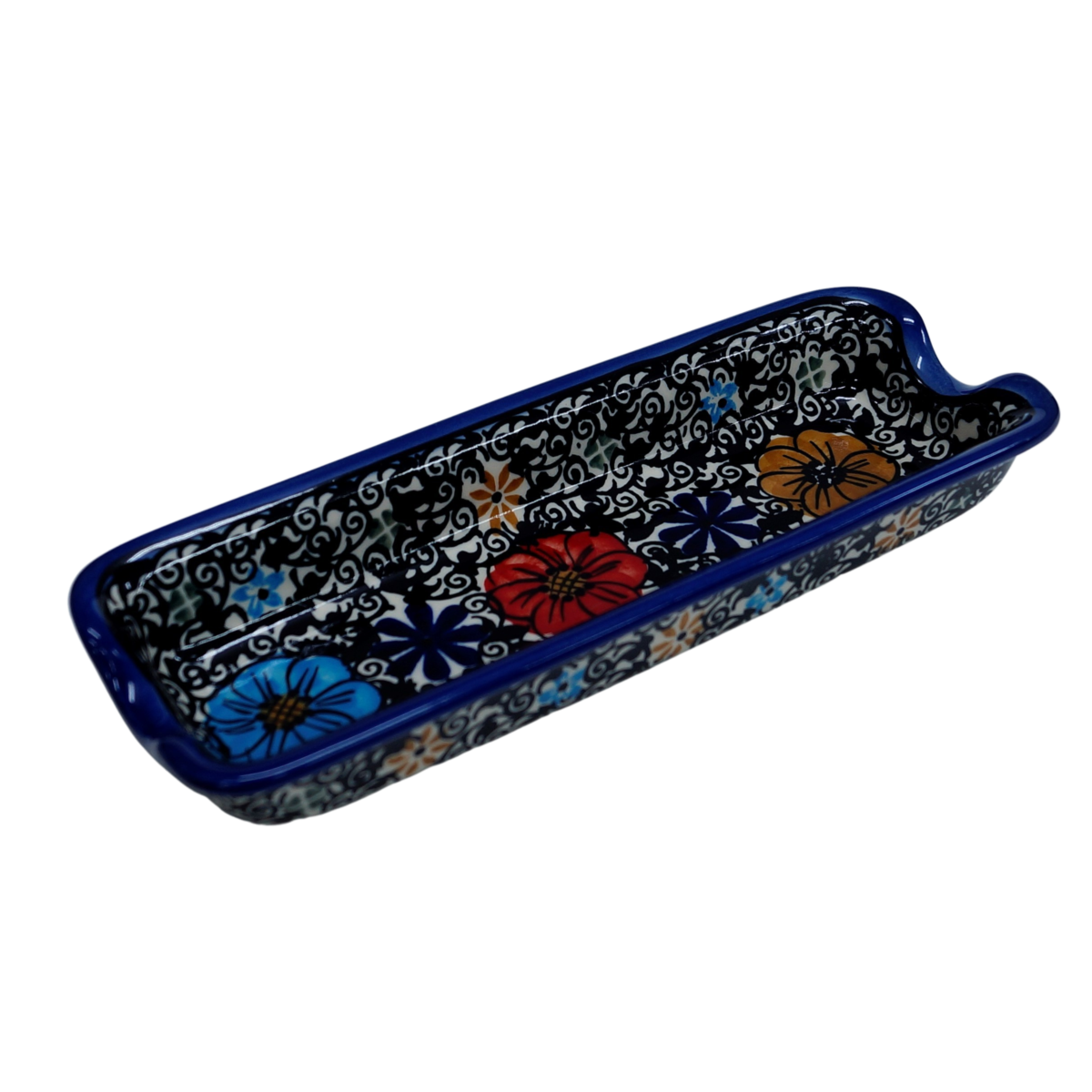 Kukurydza gotowana, kukurydza gotowana… w folii podawana… na szczęście wyszliśmy naprzeciw Państwa oczekiwaniom i stworzyliśmy produkt niezbędny do podawania kolby gotowanej kukurydzy. Tacka ma specjalne wycięcia po bocznych stronach aby umożliwić ułożenie całej kolby kukurydzy i uniknąć poparzenia dłoni. Zagłębienie tacki umożliwia dodanie do spożycia soli, pieprzu lub masła, które nie spłynie na ręce czy stół na którym stoi naczynie ceramiczne.
