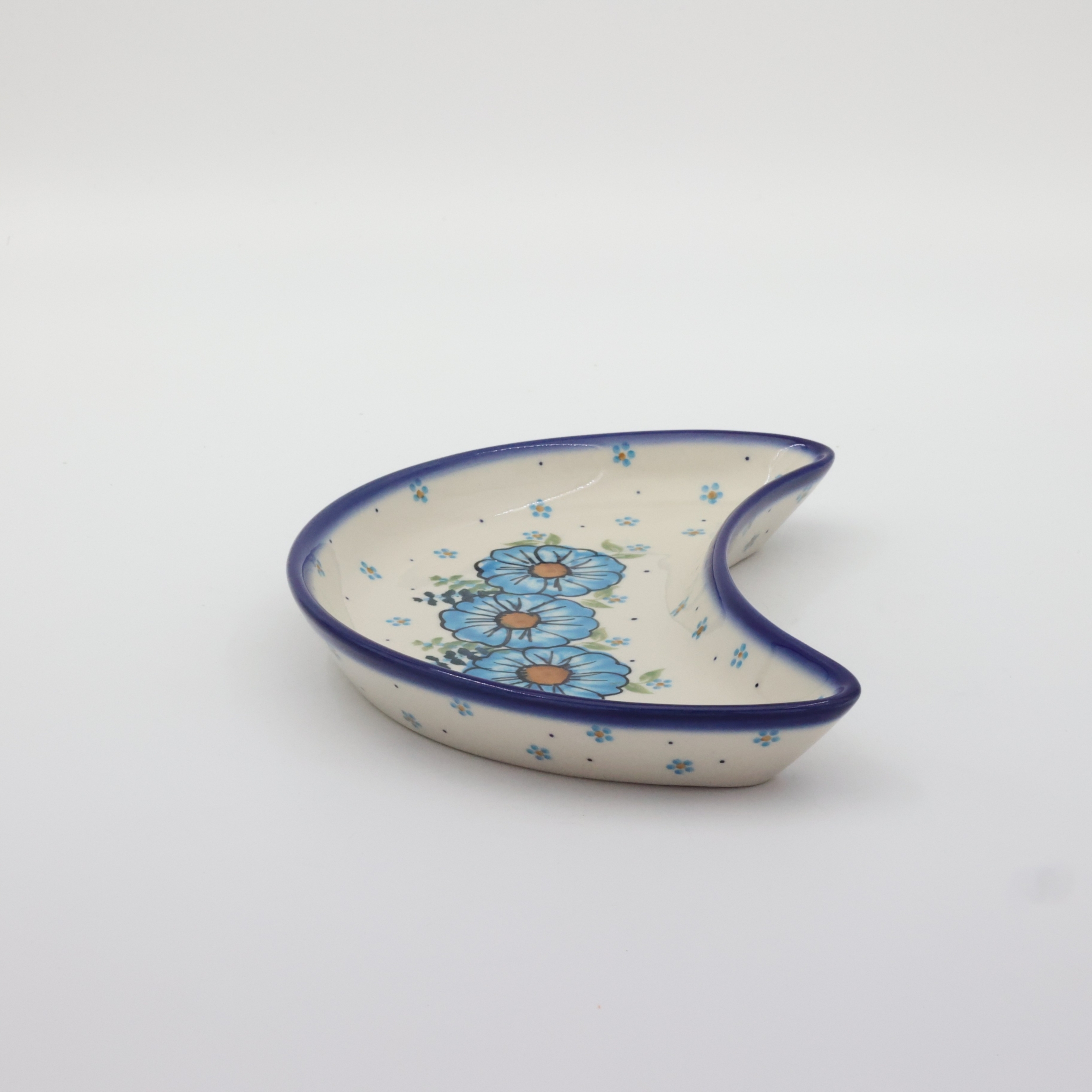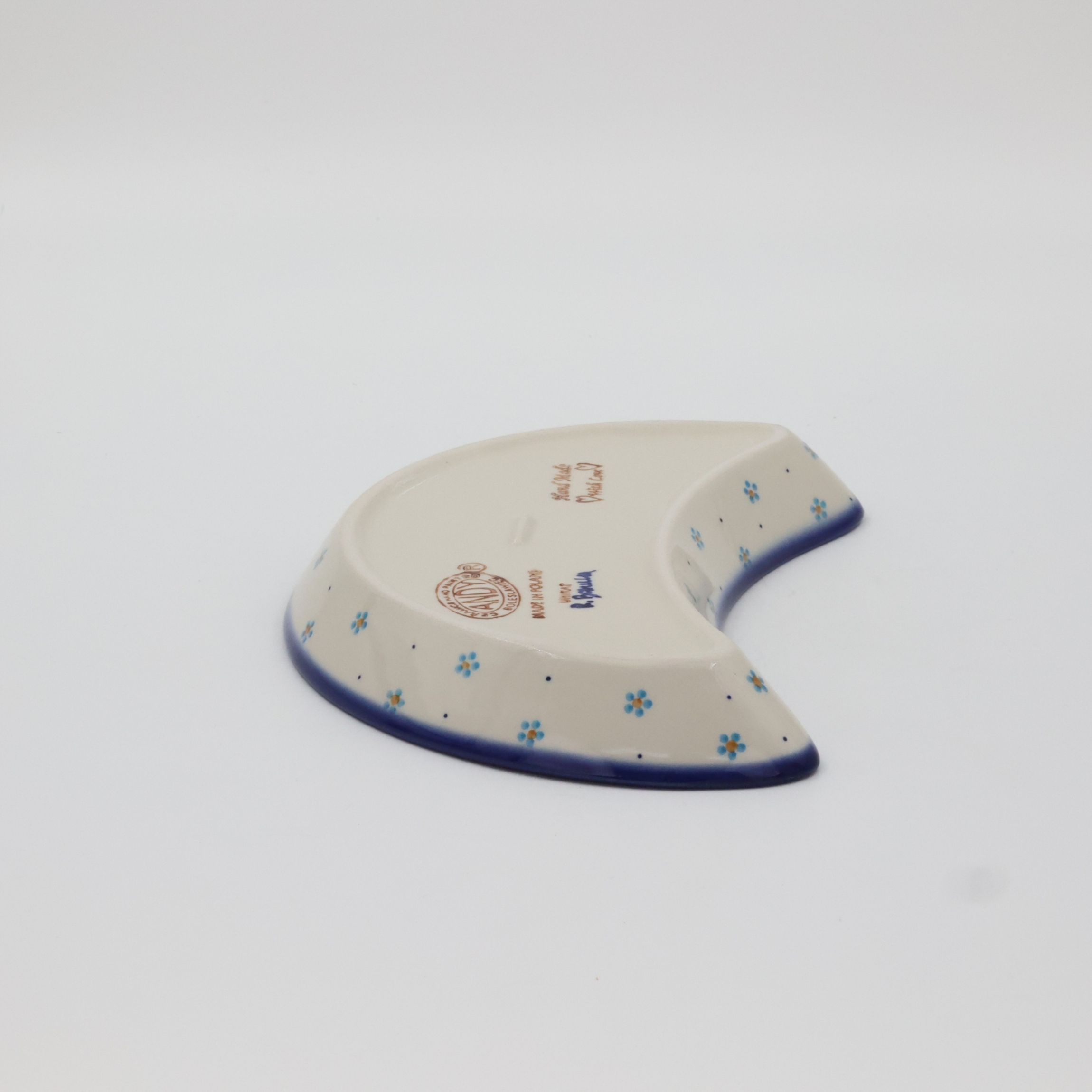 Oryginalny produkt ceramiki bolesławieckiej - tacka półksiężyc, ręcznie malowana w rodzinnej fabryce oryginalnej ceramiki bolesławieckiej, ANDY CERAMIKA.