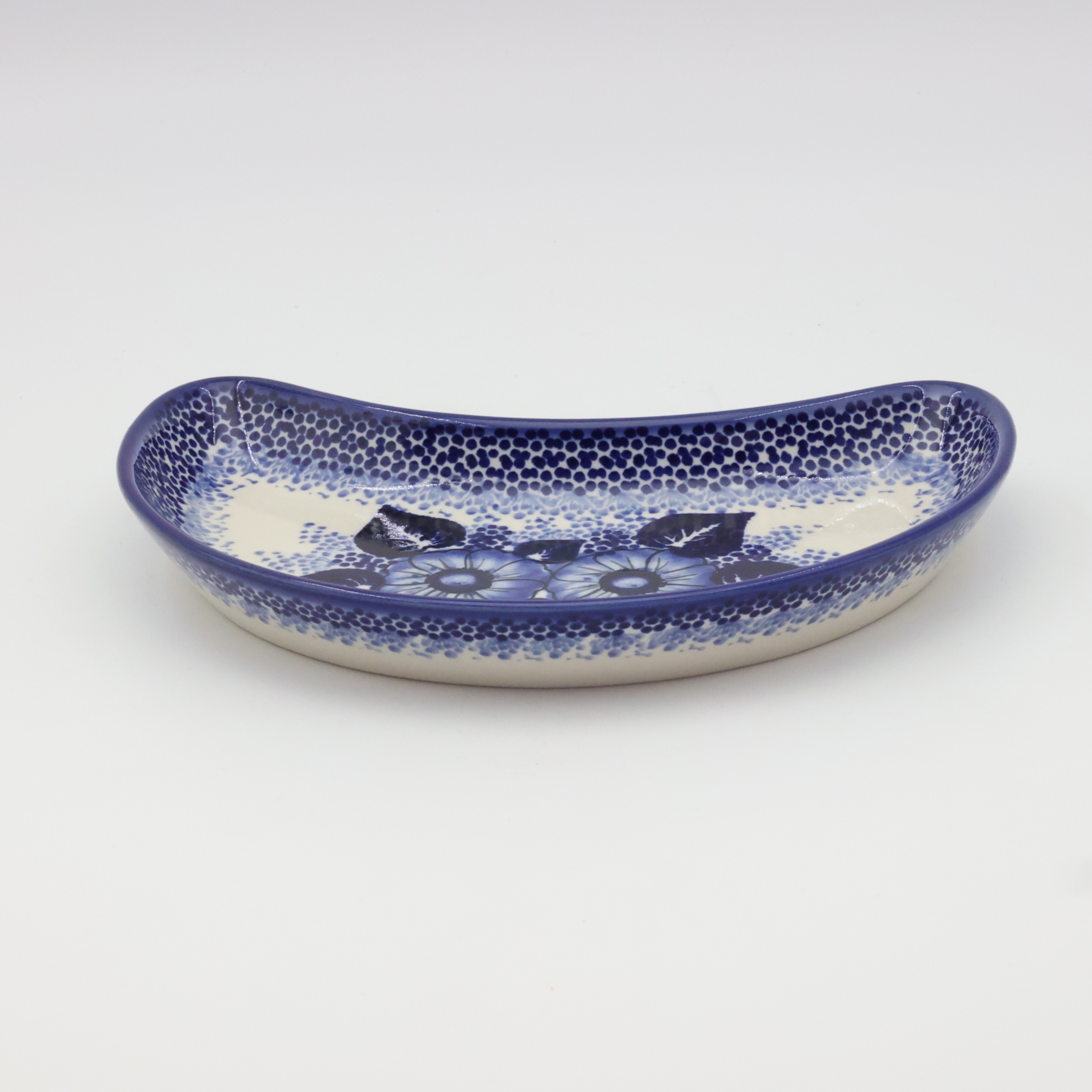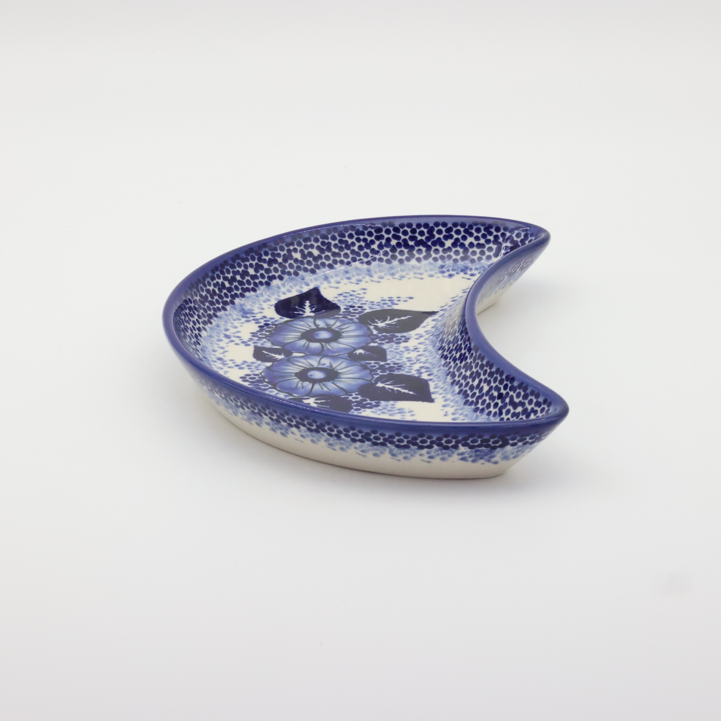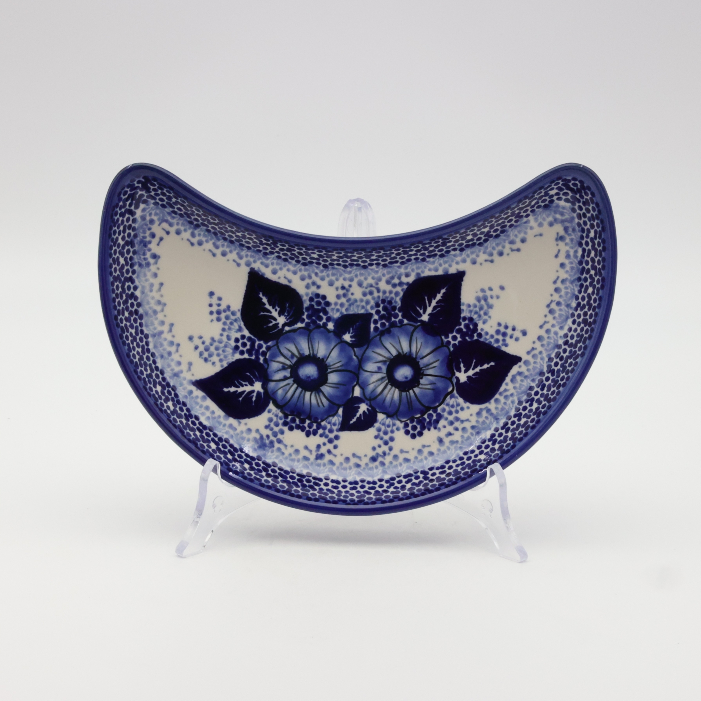 Oryginalny produkt ceramiki bolesławieckiej - tacka półksiężyc, ręcznie malowana w rodzinnej fabryce oryginalnej ceramiki bolesławieckiej, ANDY CERAMIKA.