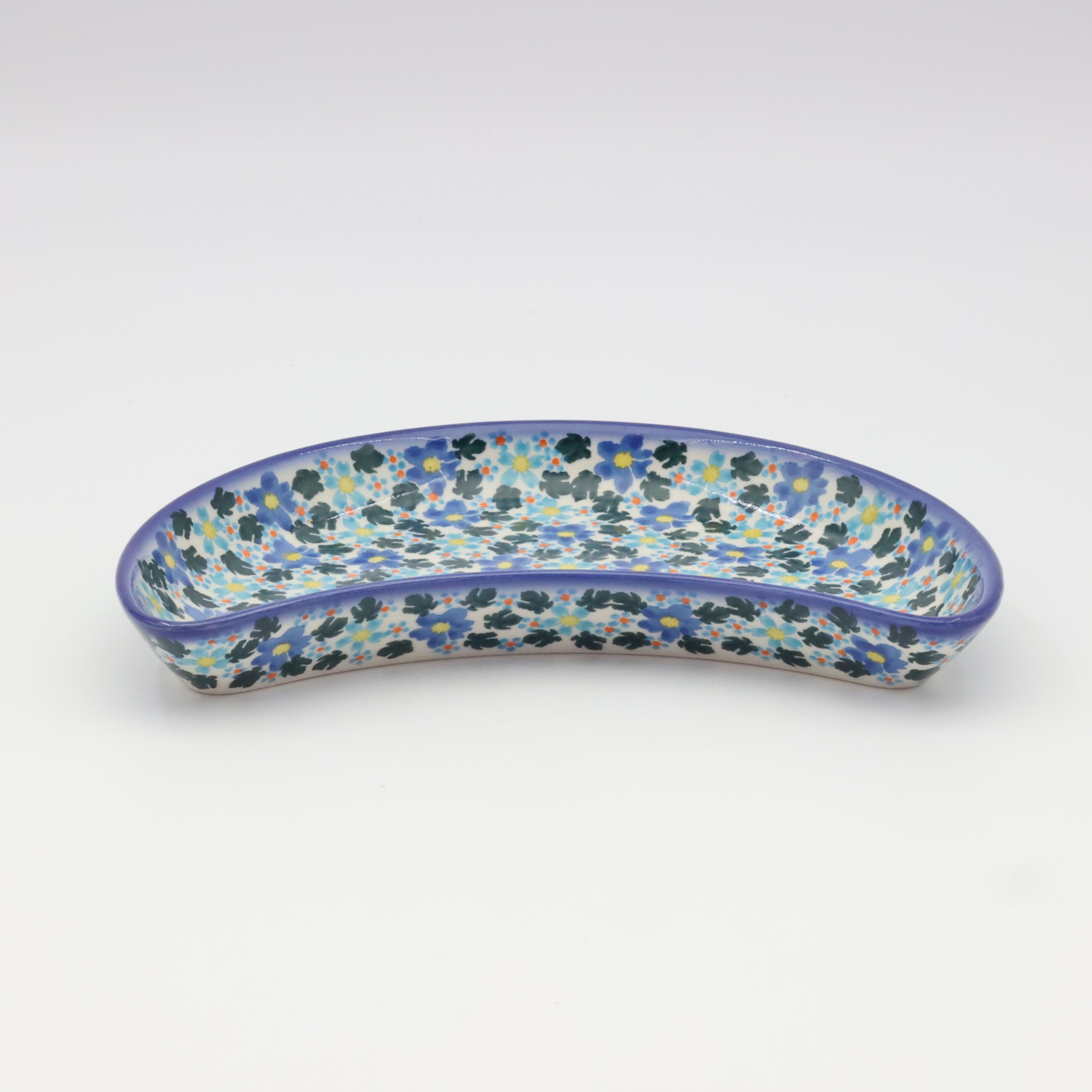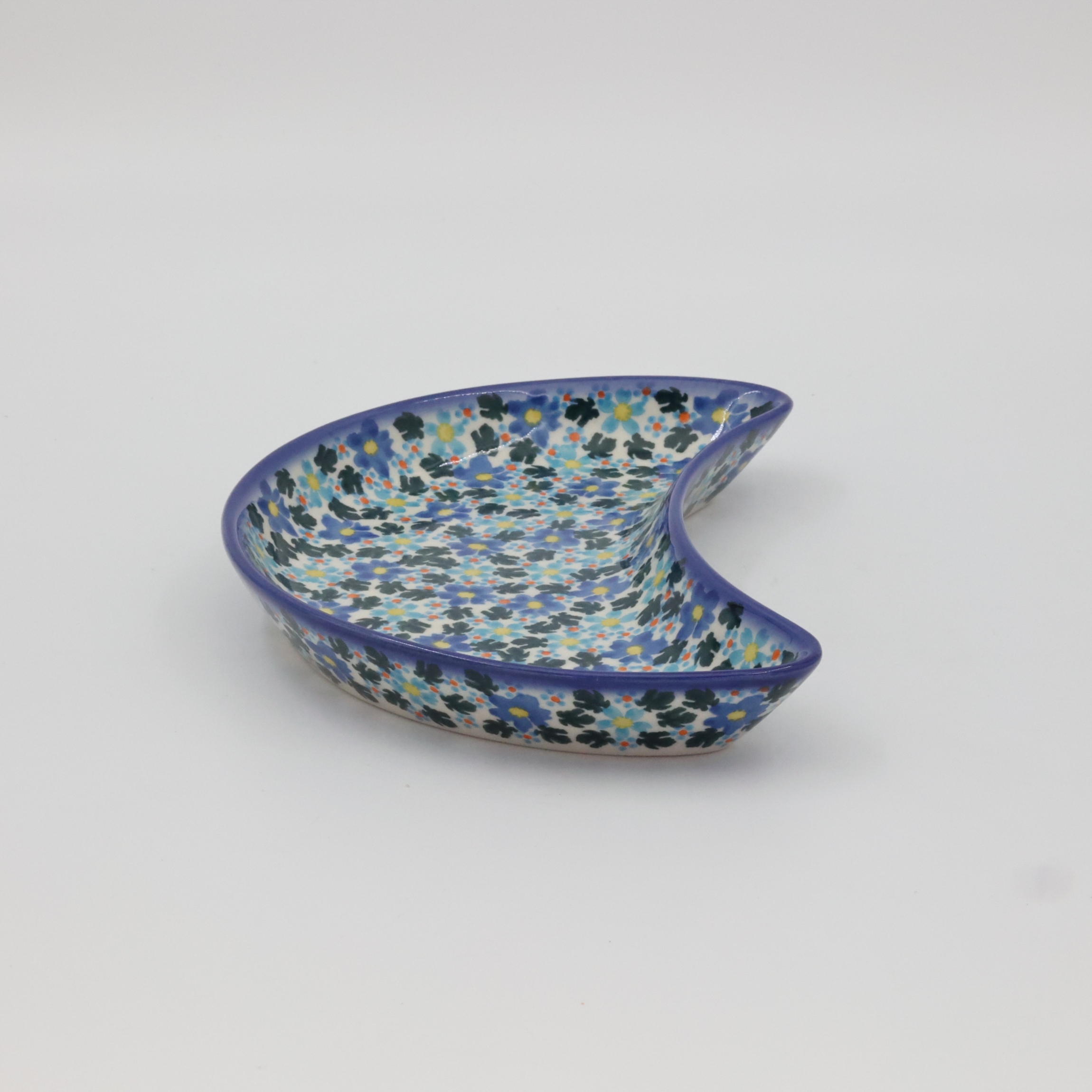 Oryginalny produkt ceramiki bolesławieckiej - tacka półksiężyc, ręcznie malowana w rodzinnej fabryce oryginalnej ceramiki bolesławieckiej, ANDY CERAMIKA.