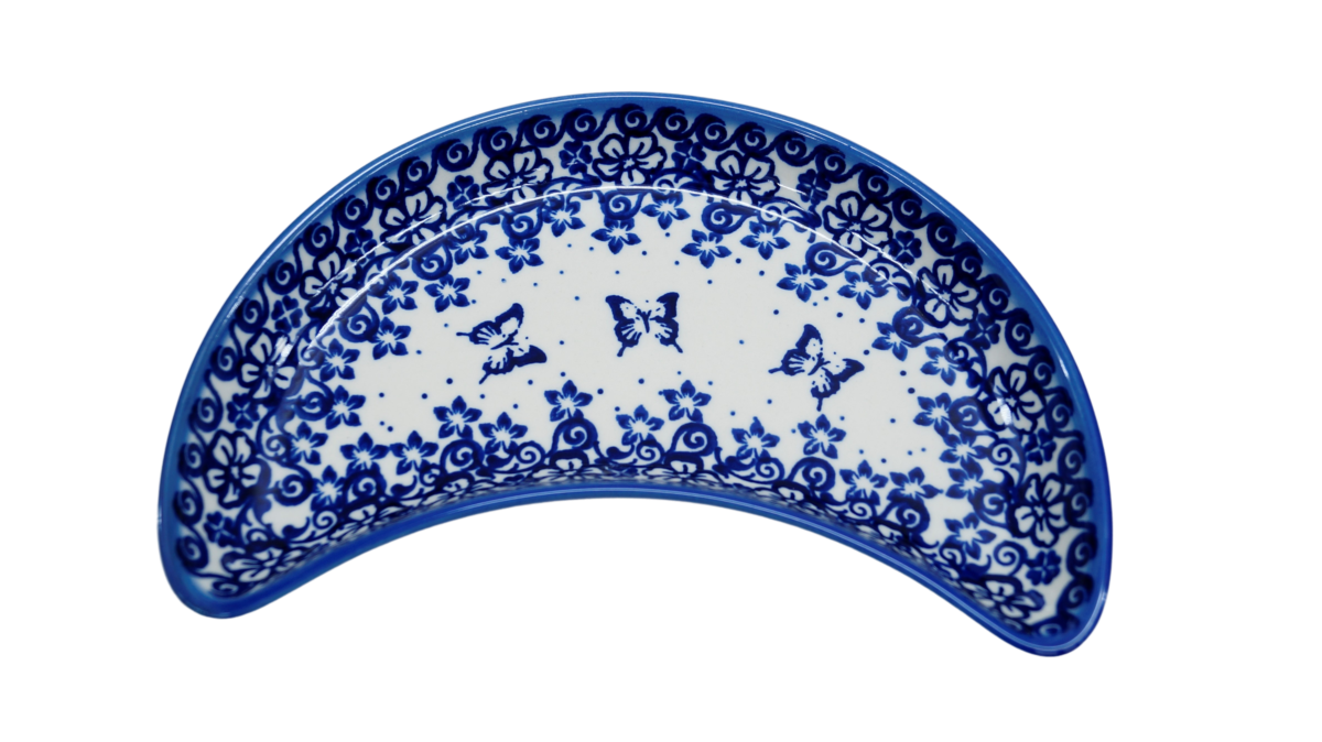 Oryginalny produkt ceramiki bolesławieckiej - tacka półksiężyc, ręcznie malowana w rodzinnej fabryce oryginalnej ceramiki bolesławieckiej, ANDY CERAMIKA.