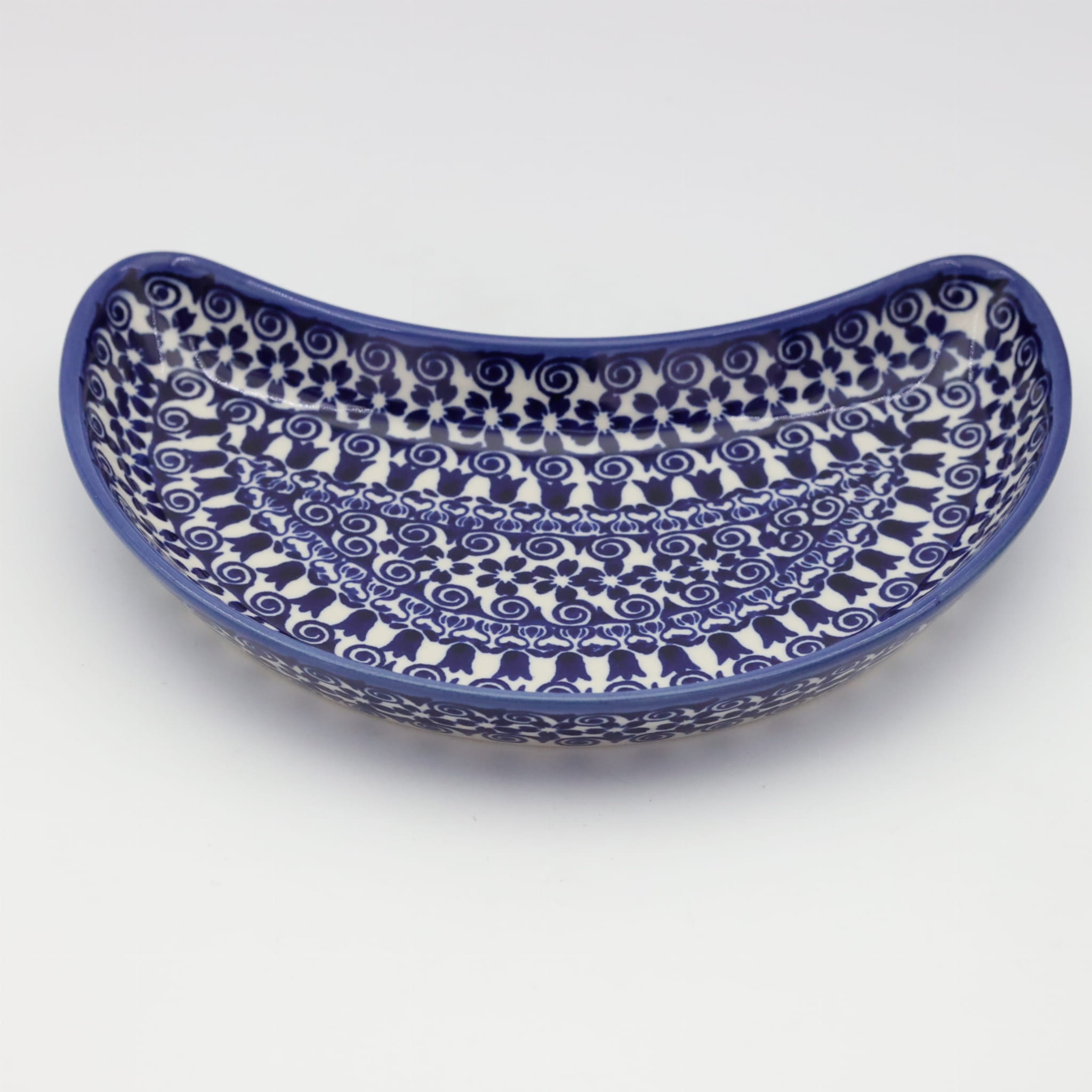 Oryginalny produkt ceramiki bolesławieckiej - tacka półksiężyc, ręcznie malowana w rodzinnej fabryce oryginalnej ceramiki bolesławieckiej, ANDY CERAMIKA.