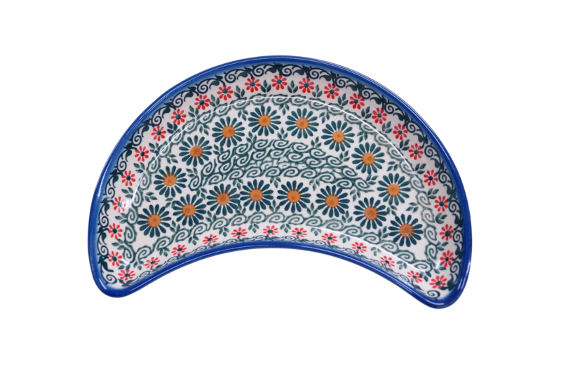 Oryginalny produkt ceramiki bolesławieckiej - tacka półksiężyc, ręcznie malowana w rodzinnej fabryce oryginalnej ceramiki bolesławieckiej, ANDY CERAMIKA.