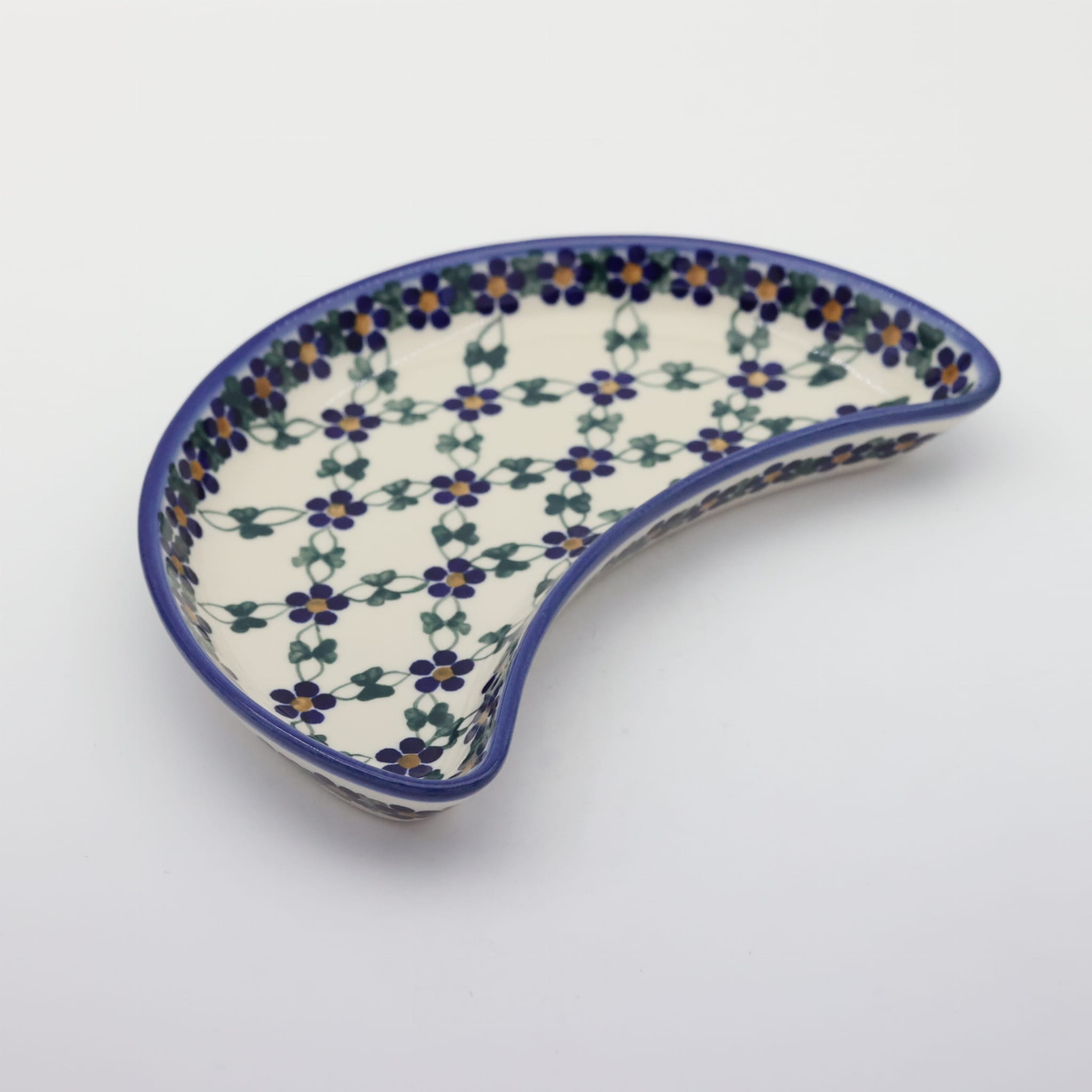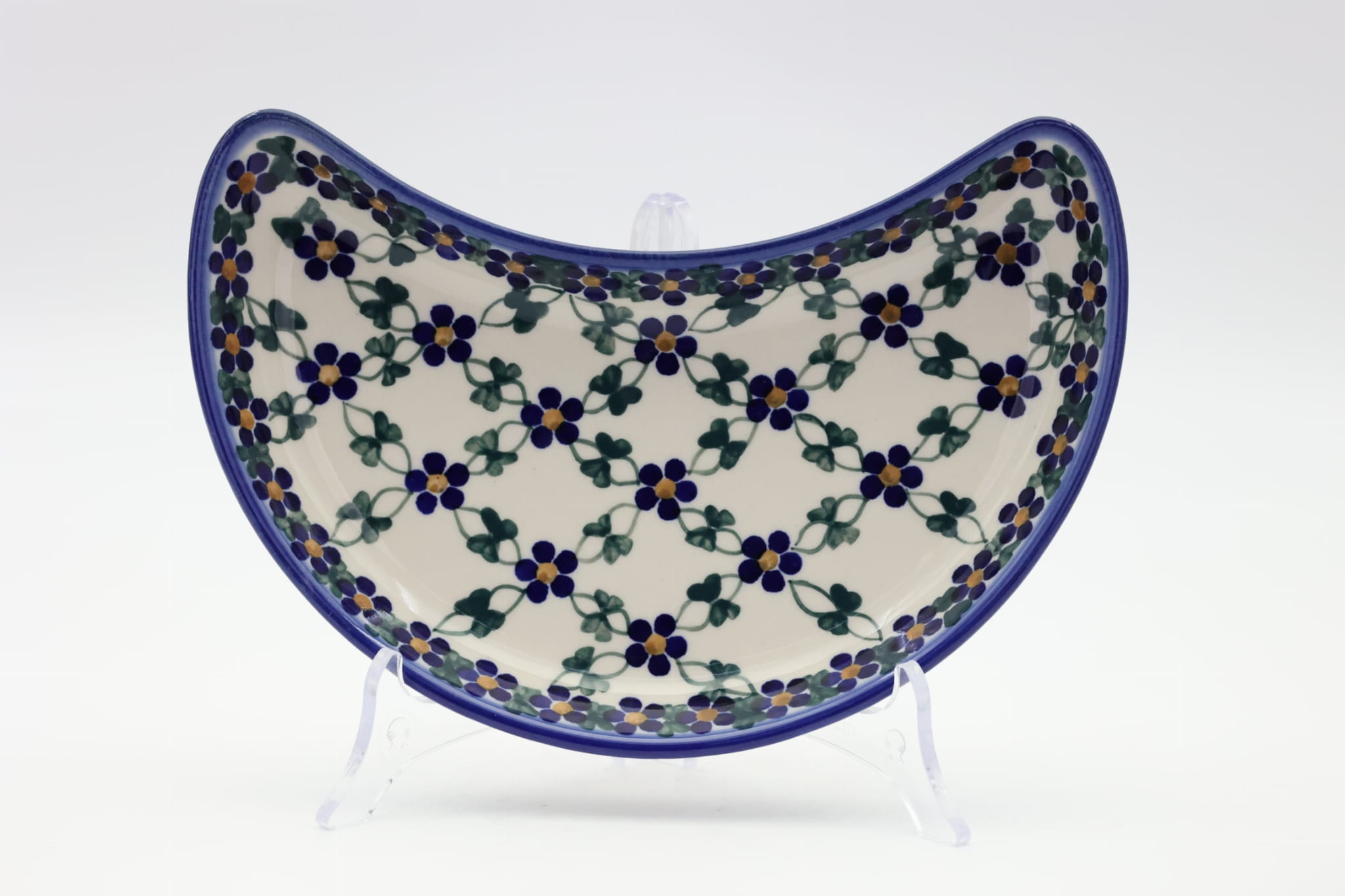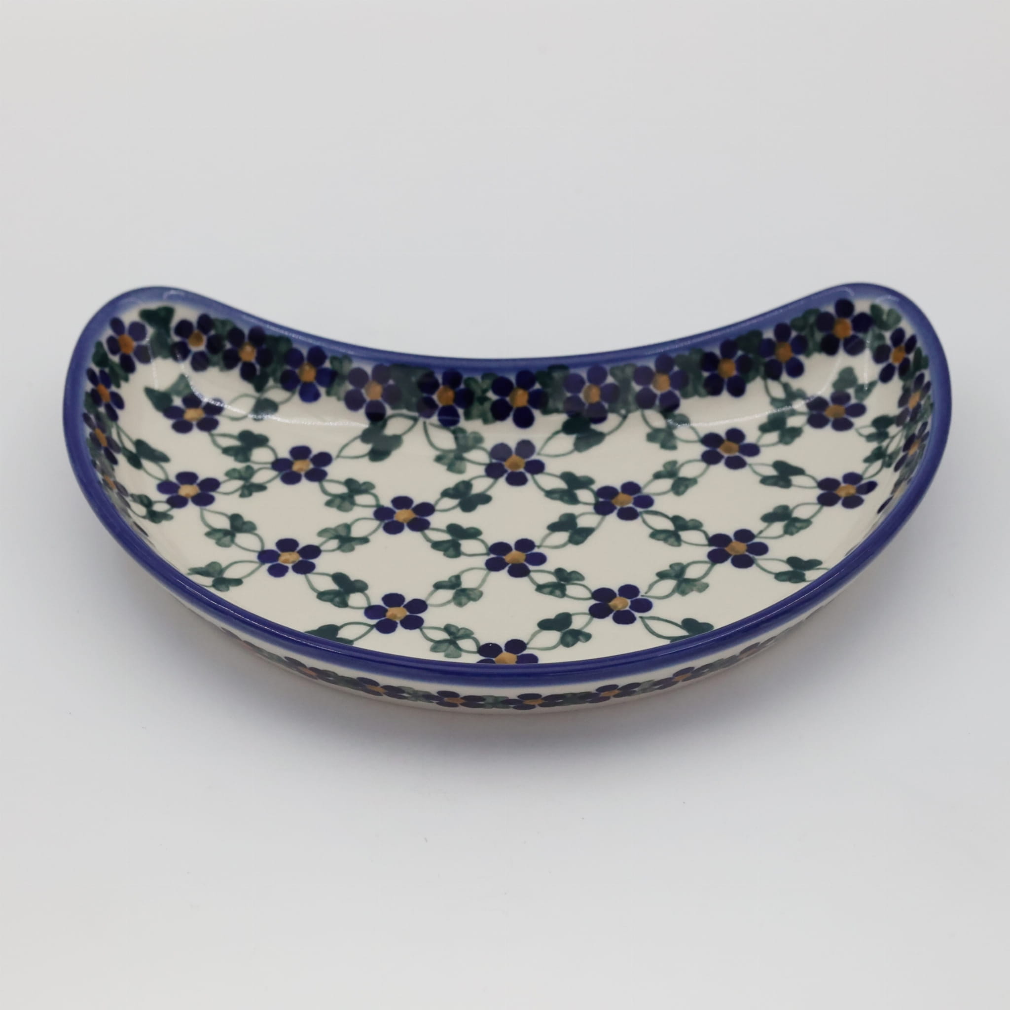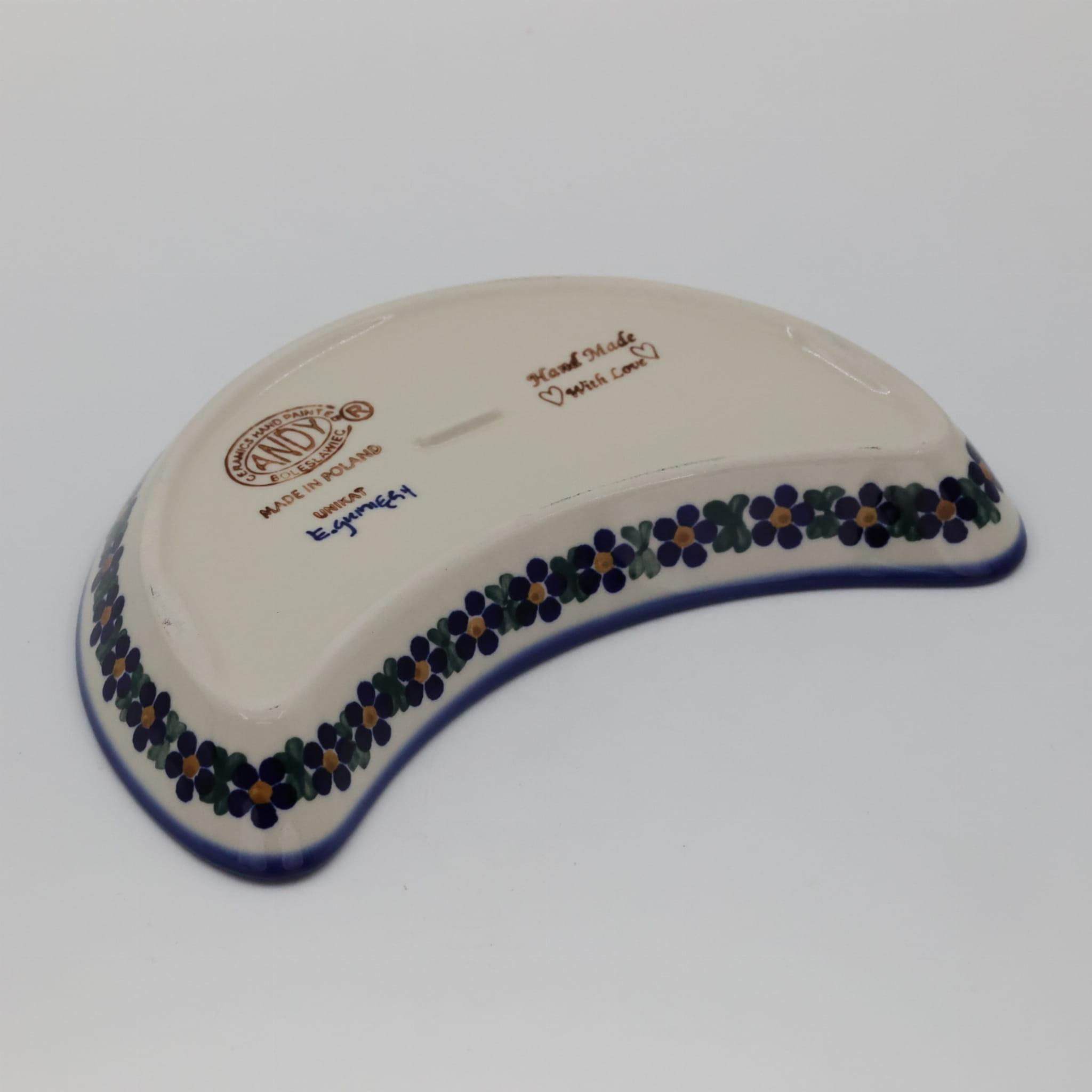 Oryginalny produkt ceramiki bolesławieckiej - tacka półksiężyc, ręcznie malowana w rodzinnej fabryce oryginalnej ceramiki bolesławieckiej, ANDY CERAMIKA.