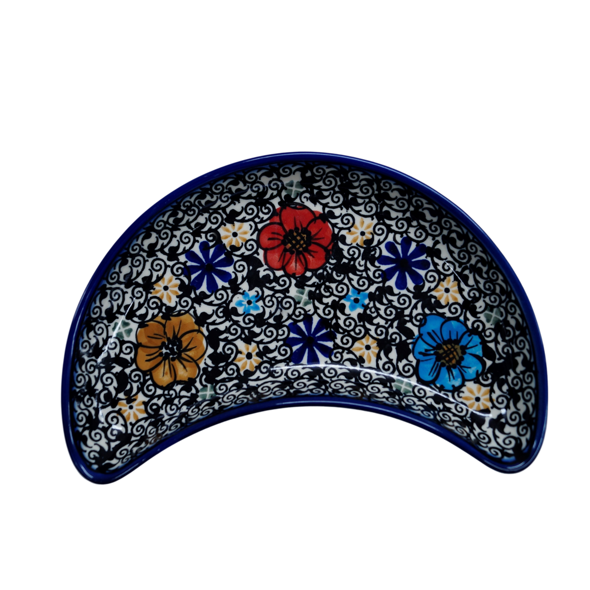 Oryginalny produkt ceramiki bolesławieckiej - tacka półksiężyc, ręcznie malowana w rodzinnej fabryce oryginalnej ceramiki bolesławieckiej, ANDY CERAMIKA.