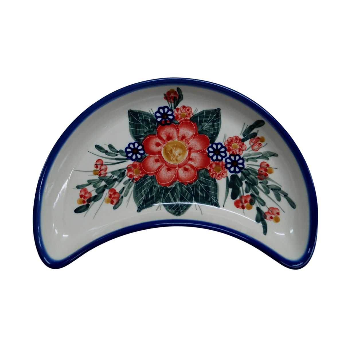 Oryginalny produkt ceramiki bolesławieckiej - tacka półksiężyc, ręcznie malowana w rodzinnej fabryce oryginalnej ceramiki bolesławieckiej, ANDY CERAMIKA.