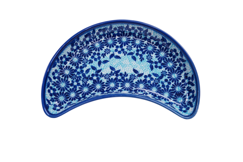 Oryginalny produkt ceramiki bolesławieckiej - tacka półksiężyc, ręcznie malowana w rodzinnej fabryce oryginalnej ceramiki bolesławieckiej, ANDY CERAMIKA.