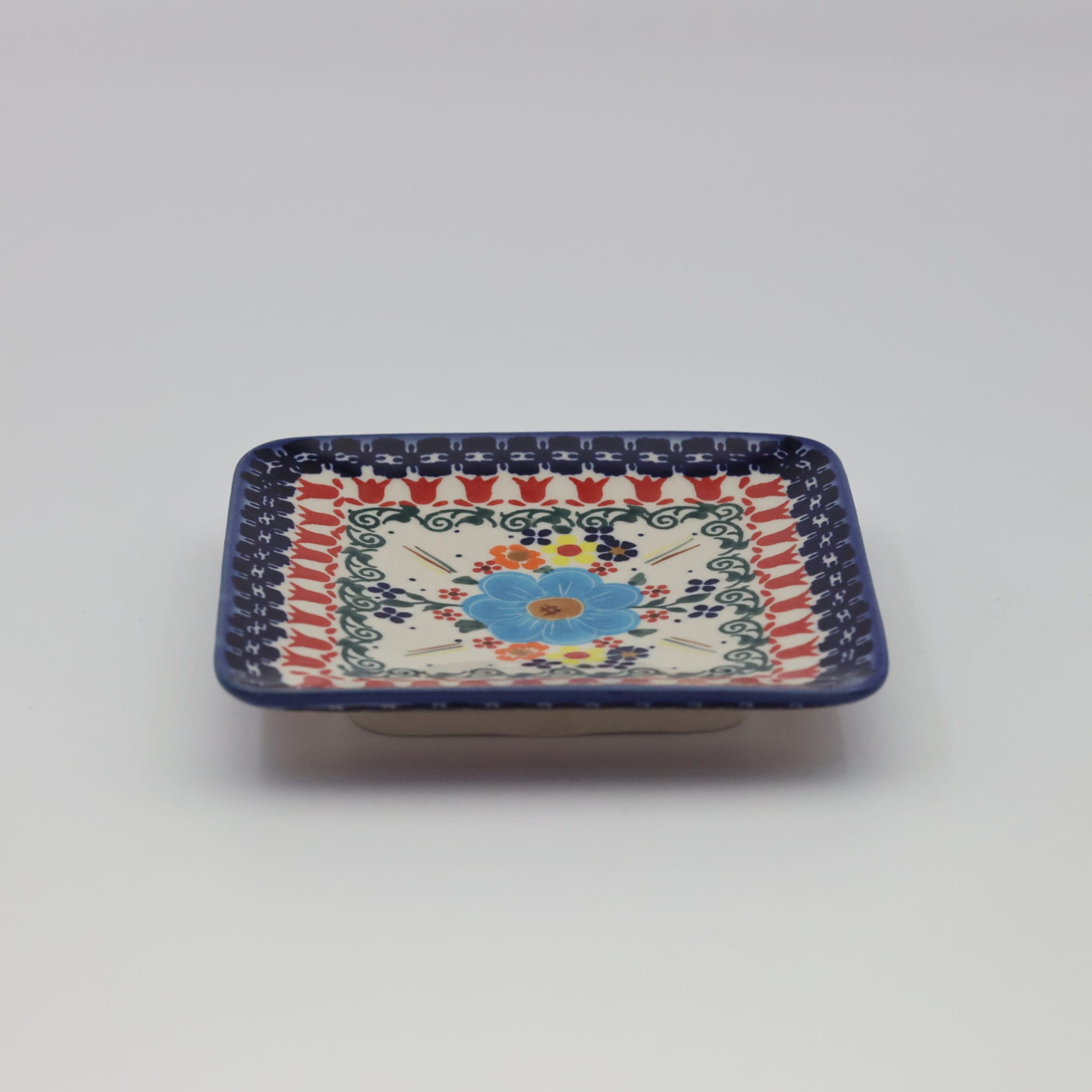 Wprowadź do swojej kuchni odrobinę tradycyjnej polskiej sztuki z naszym unikalnym talerzem tacką z ceramiki bolesławieckiej. Ręcznie wykonany przez mistrzów rzemiosła, ten kwadratowy talerz ceramiczny łączy w sobie funkcjonalność z niezwykłym wzornictwem, które wyróżnia bolesławiecką ceramikę na całym świecie.