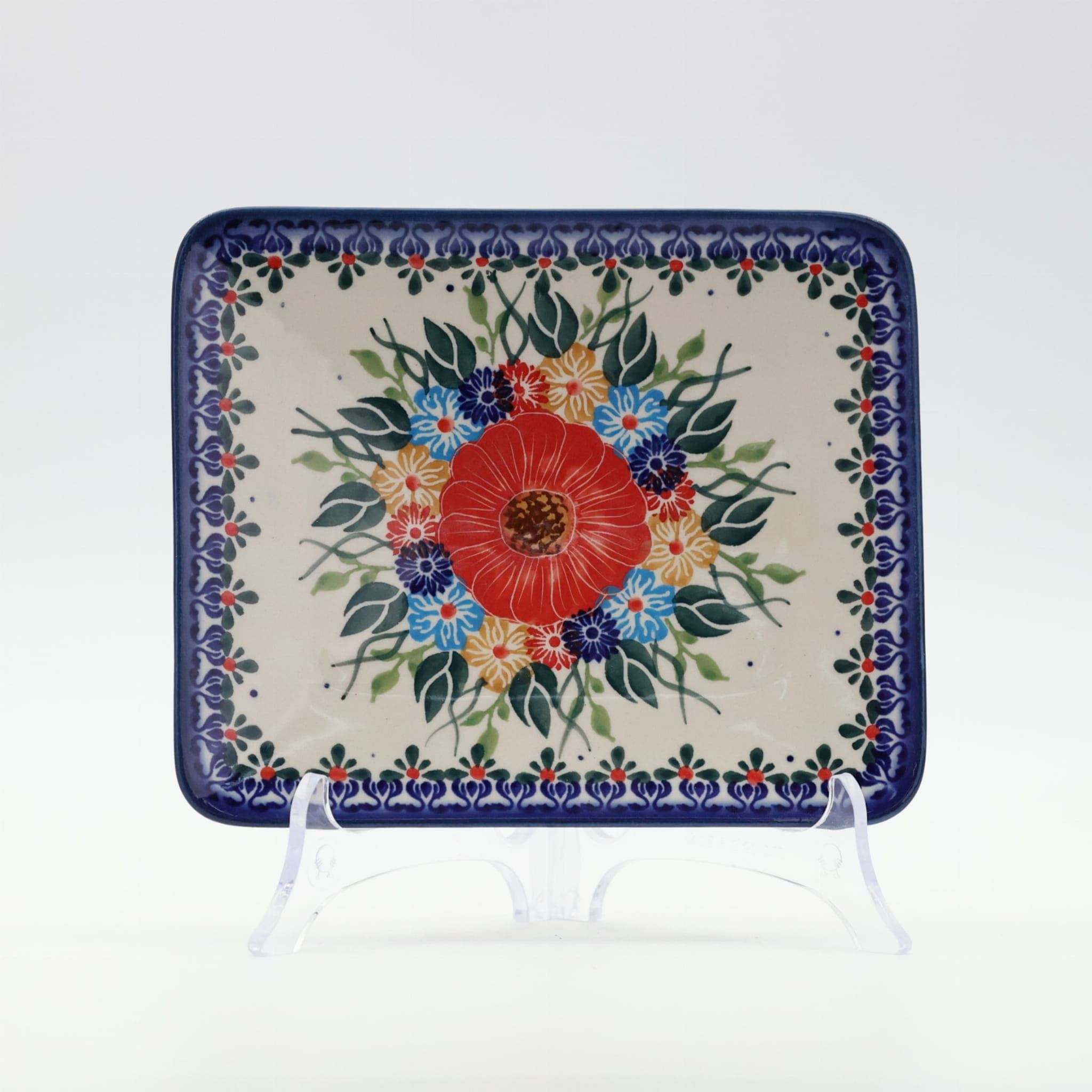 Wprowadź do swojej kuchni odrobinę tradycyjnej polskiej sztuki z naszym unikalnym talerzem tacką z ceramiki bolesławieckiej. Ręcznie wykonany przez mistrzów rzemiosła, ten prostokątny talerz łączy w sobie funkcjonalność z niezwykłym wzornictwem, które wyróżnia bolesławiecką ceramikę na całym świecie.