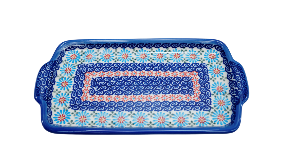 Oryginalny produkt ceramiki bolesławieckiej - tacka z uszami, ręcznie malowana w rodzinnej fabryce, oryginalnej ceramiki bolesławieckiej, ANDY CERAMIKA.