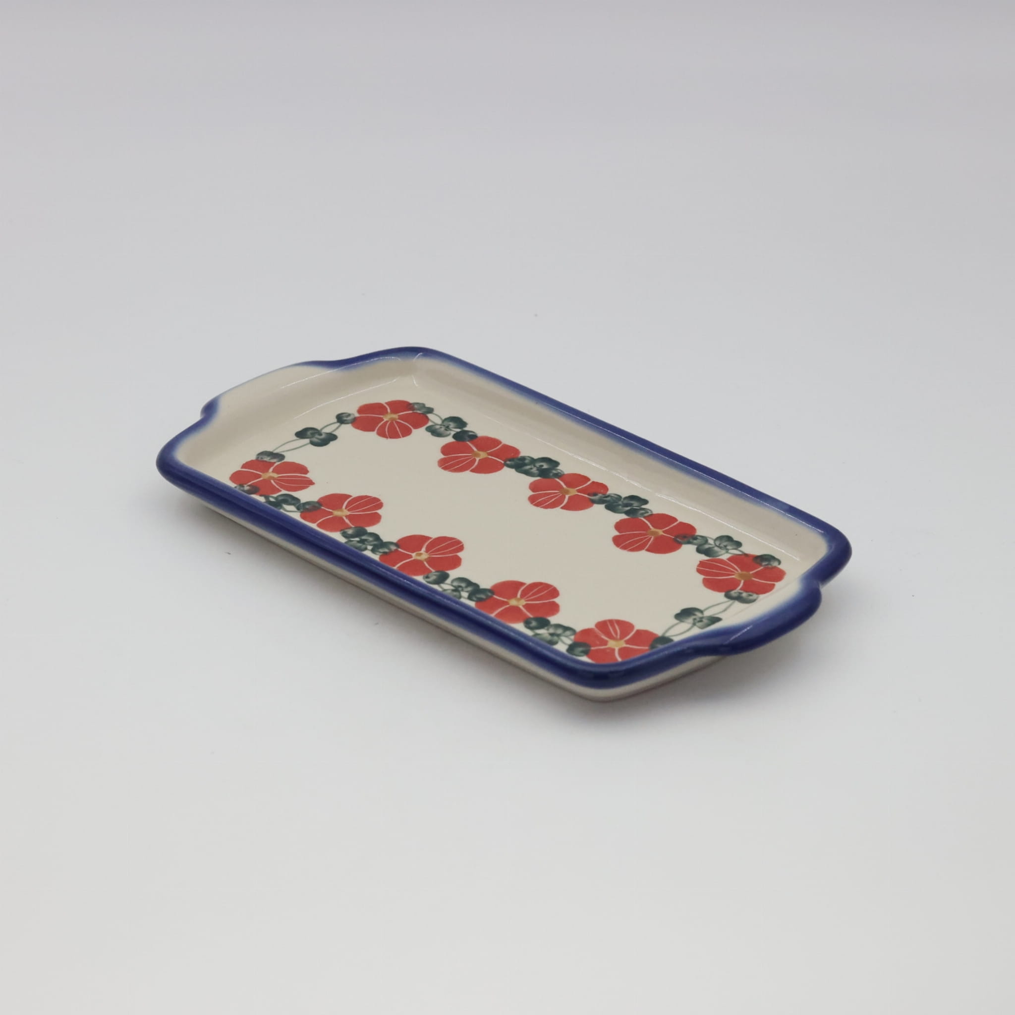 Oryginalny produkt ceramiki bolesławieckiej - tacka z uszami, ręcznie malowana w rodzinnej fabryce, oryginalnej ceramiki bolesławieckiej, ANDY CERAMIKA.