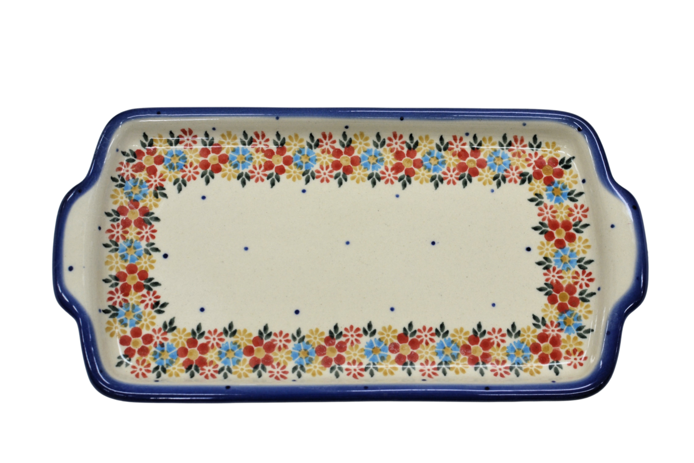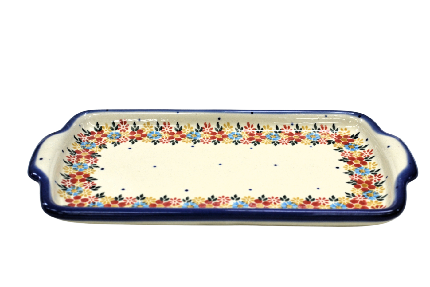 Oryginalny produkt ceramiki bolesławieckiej - tacka z uszami, ręcznie malowana w rodzinnej fabryce, oryginalnej ceramiki bolesławieckiej, ANDY CERAMIKA.