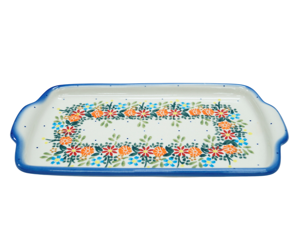 Oryginalny produkt ceramiki bolesławieckiej - tacka z uszami, ręcznie malowana w rodzinnej fabryce, oryginalnej ceramiki bolesławieckiej, ANDY CERAMIKA.