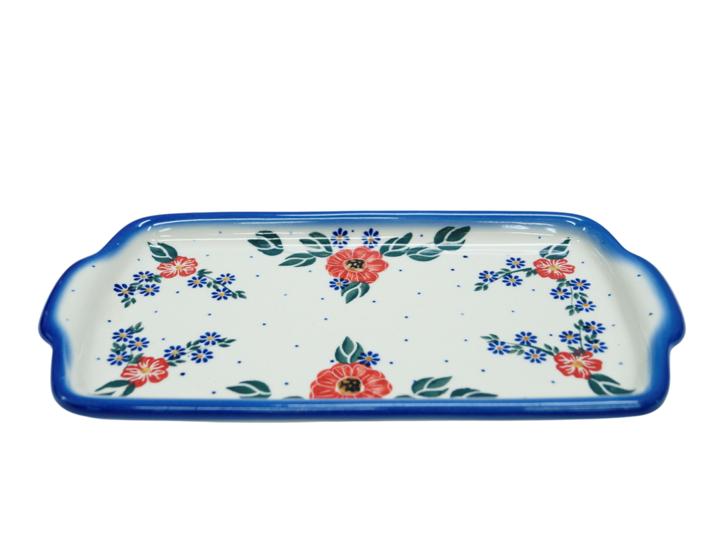 Oryginalny produkt ceramiki bolesławieckiej - tacka z uszami, ręcznie malowana w rodzinnej fabryce, oryginalnej ceramiki bolesławieckiej, ANDY CERAMIKA.