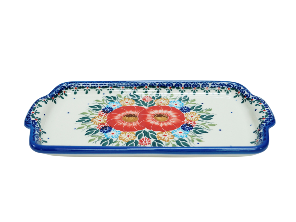 Oryginalny produkt ceramiki bolesławieckiej - tacka z uszami, ręcznie malowana w rodzinnej fabryce, oryginalnej ceramiki bolesławieckiej, ANDY CERAMIKA.