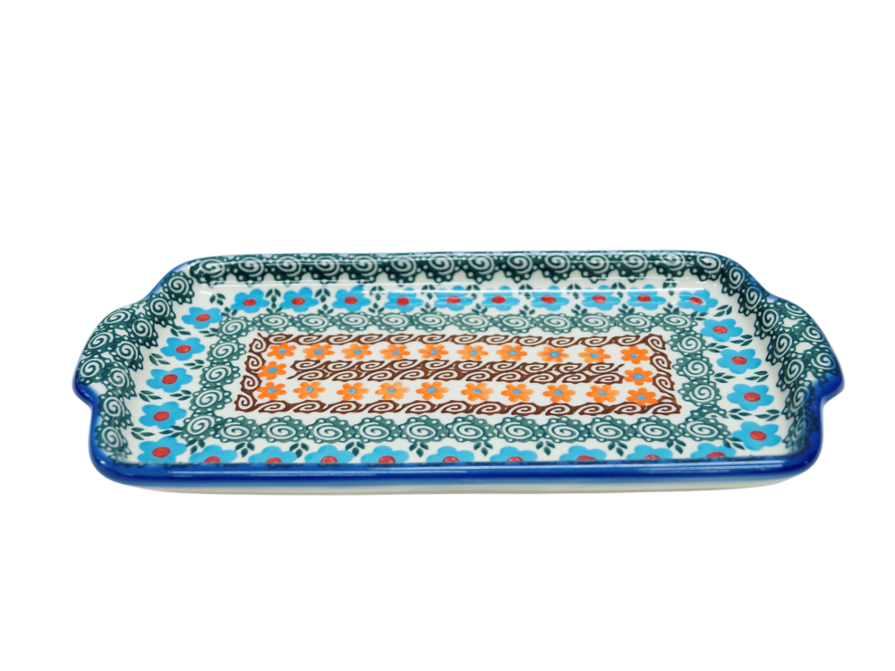 Oryginalny produkt ceramiki bolesławieckiej - tacka z uszami, ręcznie malowana w rodzinnej fabryce, oryginalnej ceramiki bolesławieckiej, ANDY CERAMIKA.