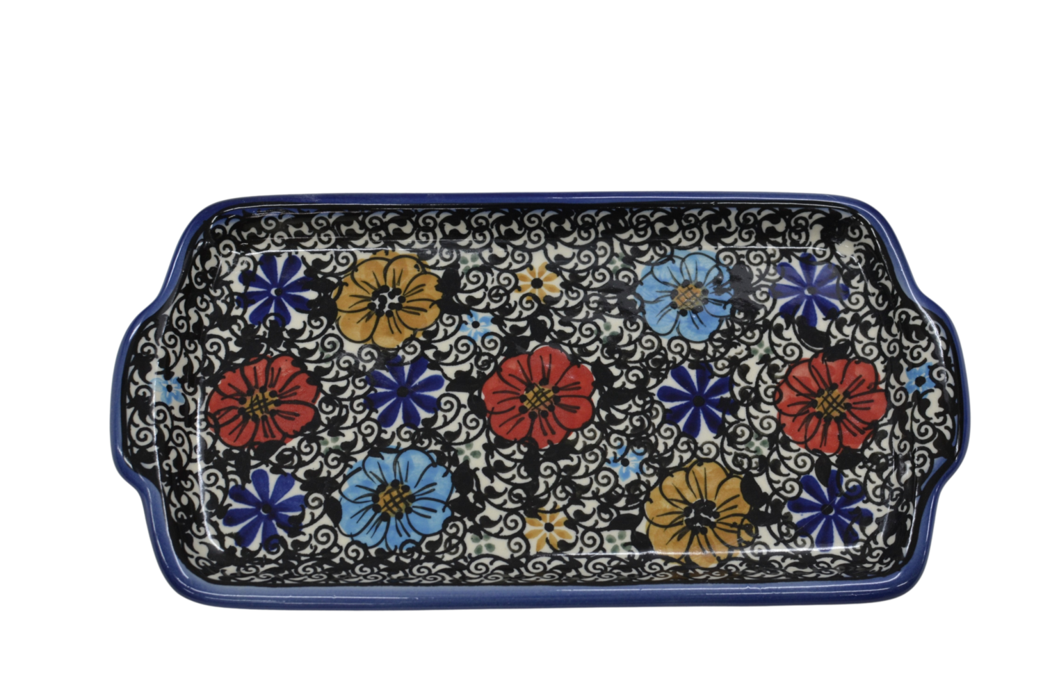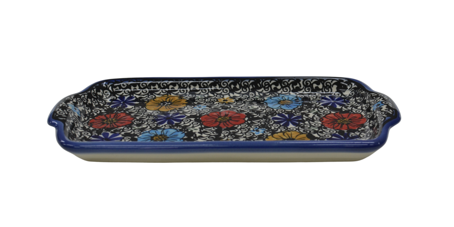 Oryginalny produkt ceramiki bolesławieckiej - tacka z uszami, ręcznie malowana w rodzinnej fabryce, oryginalnej ceramiki bolesławieckiej, ANDY CERAMIKA.