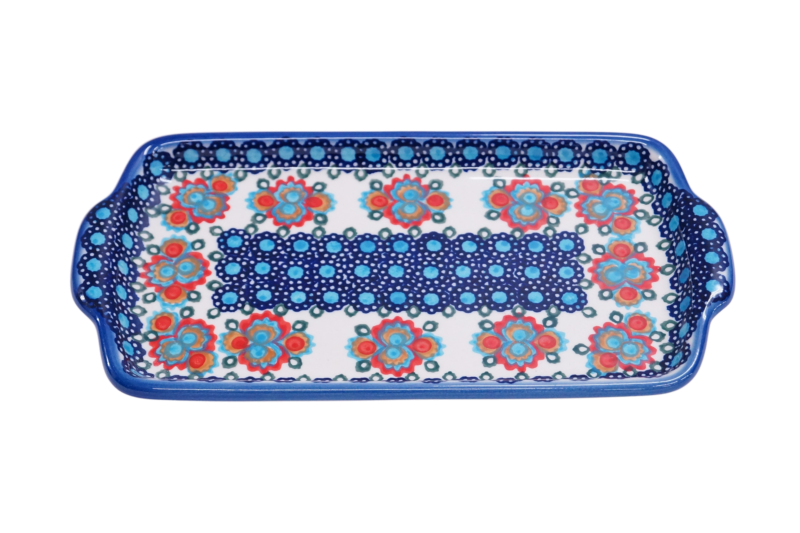 Oryginalny produkt ceramiki bolesławieckiej - tacka z uszami, ręcznie malowana w rodzinnej fabryce, oryginalnej ceramiki bolesławieckiej, ANDY CERAMIKA.