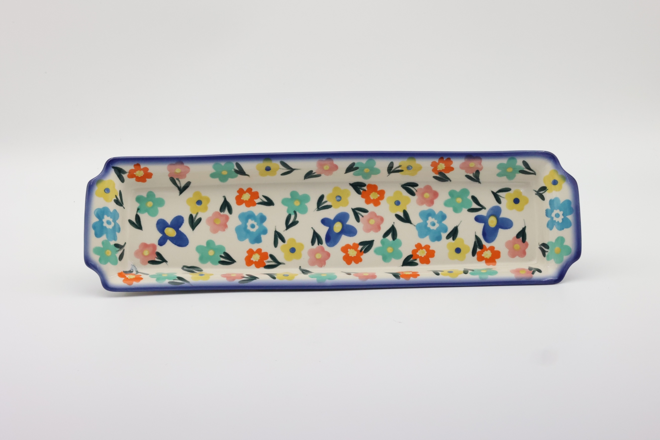 Oryginalny produkt ceramiki bolesławieckiej - tacka z uszami długa, ręcznie malowana w rodzinnej fabryce, oryginalnej ceramiki bolesławieckiej, ANDY CERAMIKA.