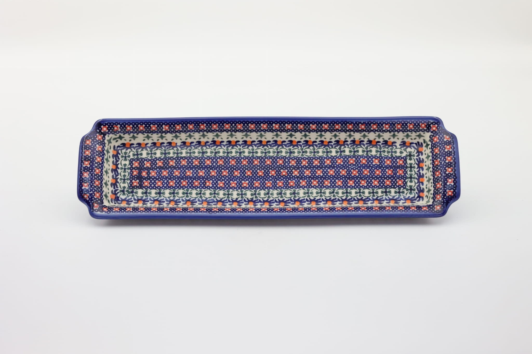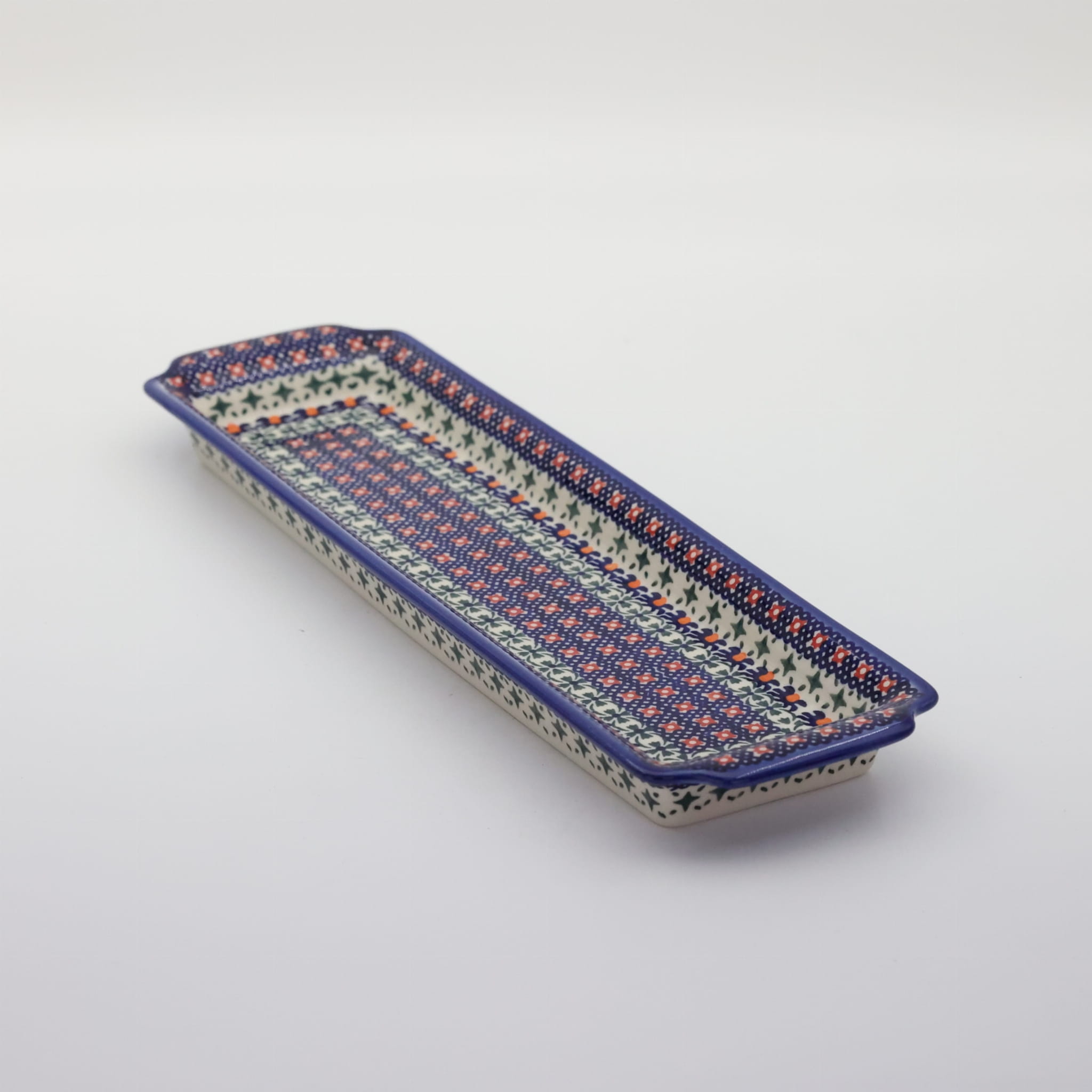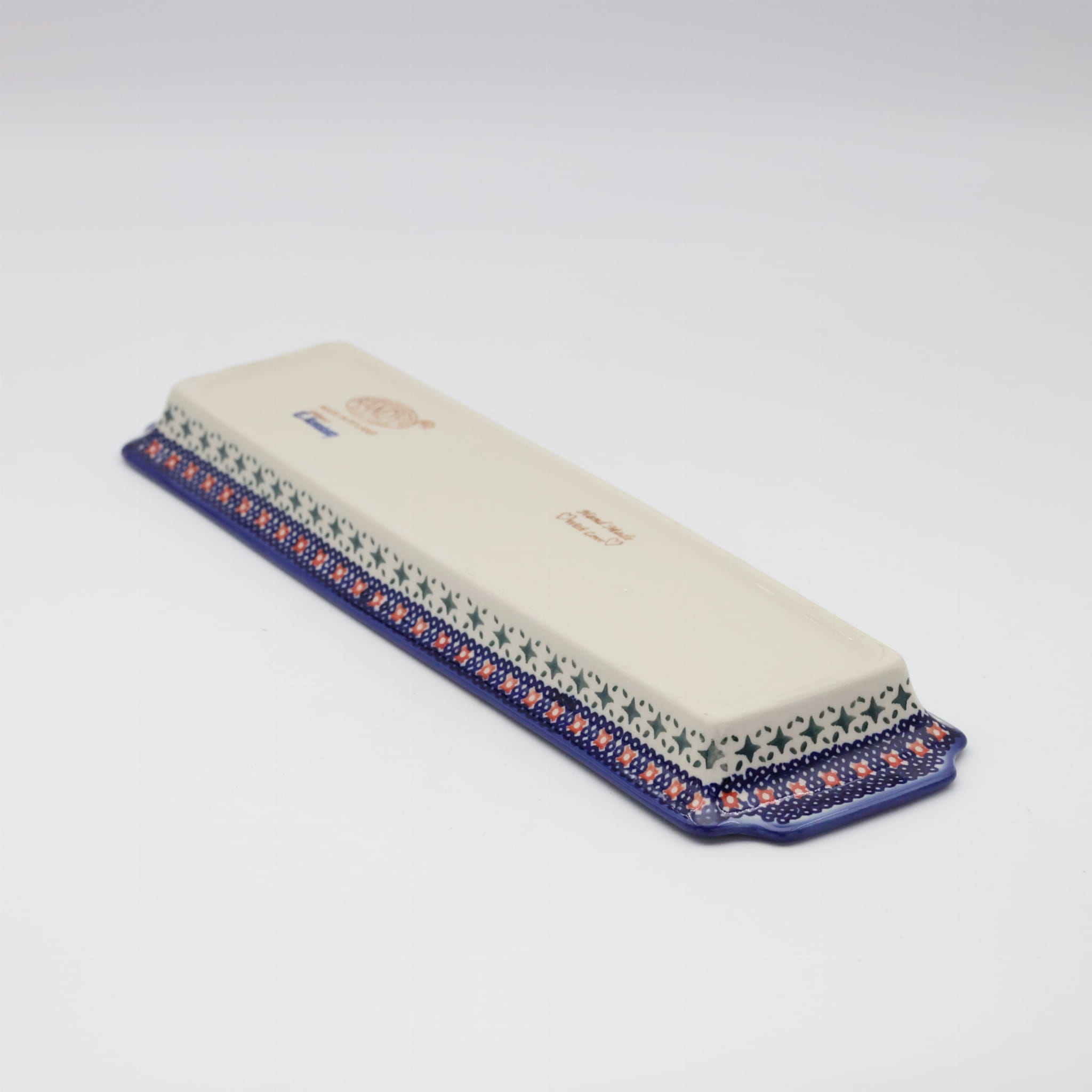 Oryginalny produkt ceramiki bolesławieckiej - tacka z uszami długa, ręcznie malowana w rodzinnej fabryce, oryginalnej ceramiki bolesławieckiej, ANDY CERAMIKA.