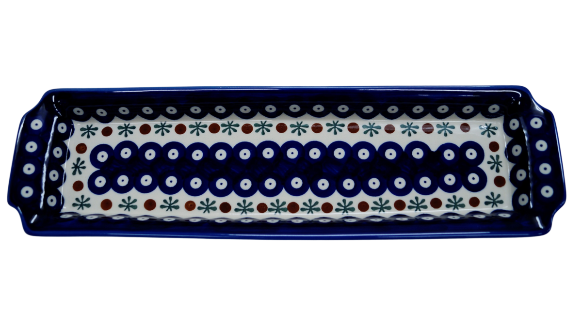 Oryginalny produkt ceramiki bolesławieckiej - tacka z uszami długa, ręcznie malowana w rodzinnej fabryce, oryginalnej ceramiki bolesławieckiej, ANDY CERAMIKA.
