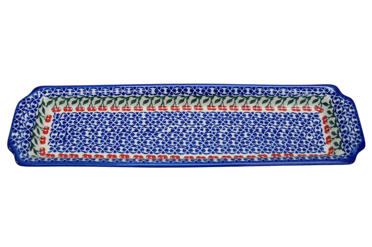 Oryginalny produkt ceramiki bolesławieckiej - tacka z uszami długa, ręcznie malowana w rodzinnej fabryce, oryginalnej ceramiki bolesławieckiej, ANDY CERAMIKA.