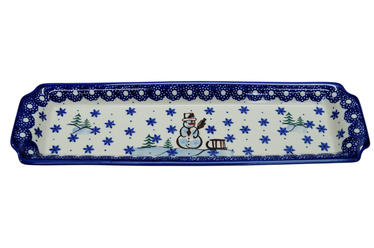 Oryginalny produkt ceramiki bolesławieckiej - tacka z uszami długa, ręcznie malowana w rodzinnej fabryce, oryginalnej ceramiki bolesławieckiej, ANDY CERAMIKA.