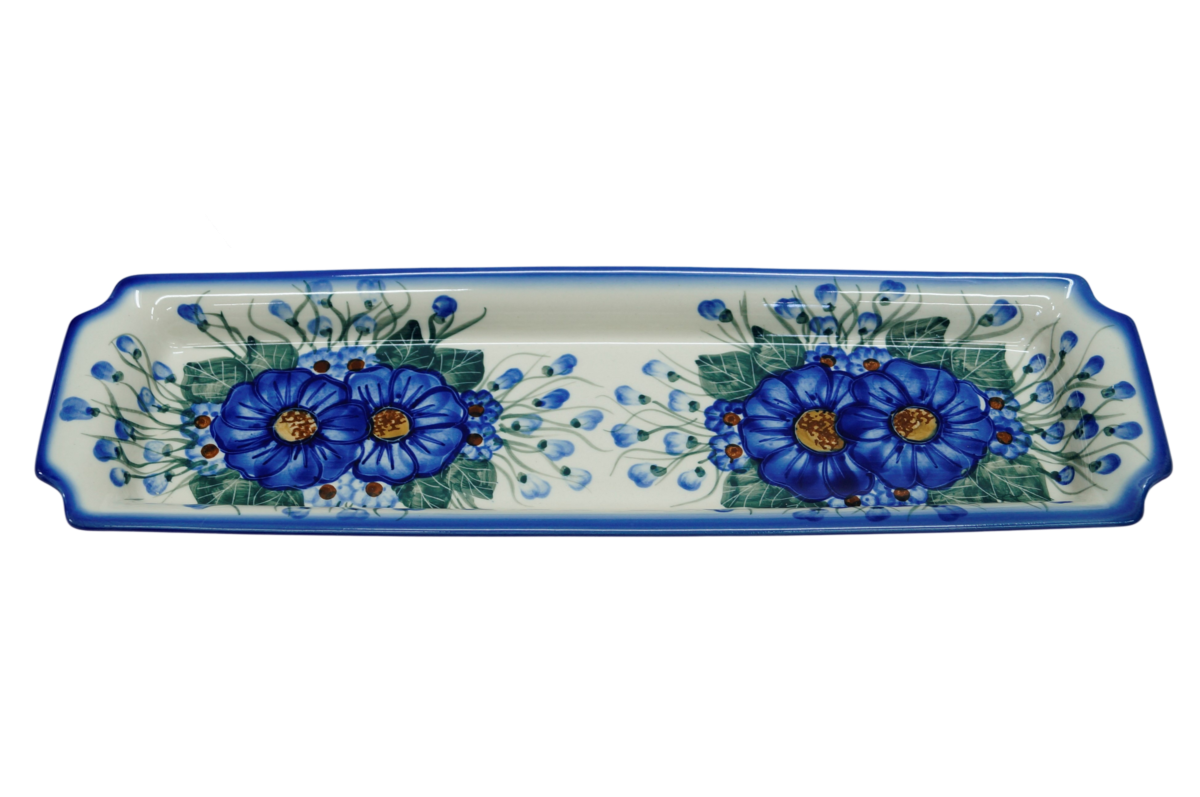 Oryginalny produkt ceramiki bolesławieckiej - tacka z uszami długa, ręcznie malowana w rodzinnej fabryce, oryginalnej ceramiki bolesławieckiej, ANDY CERAMIKA.