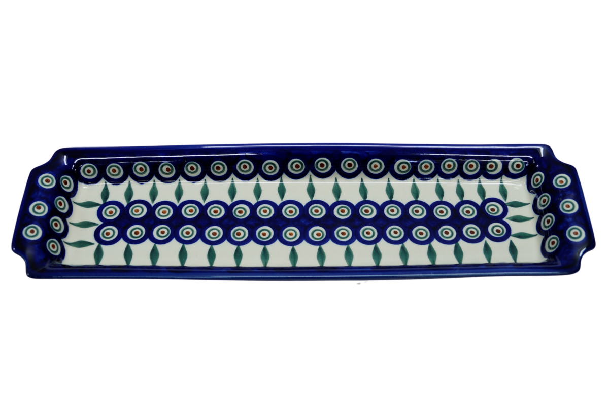 Oryginalny produkt ceramiki bolesławieckiej - tacka z uszami długa, ręcznie malowana w rodzinnej fabryce, oryginalnej ceramiki bolesławieckiej, ANDY CERAMIKA.