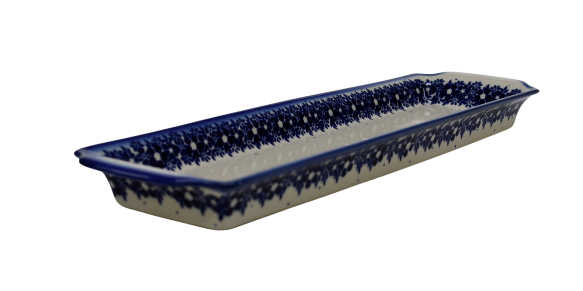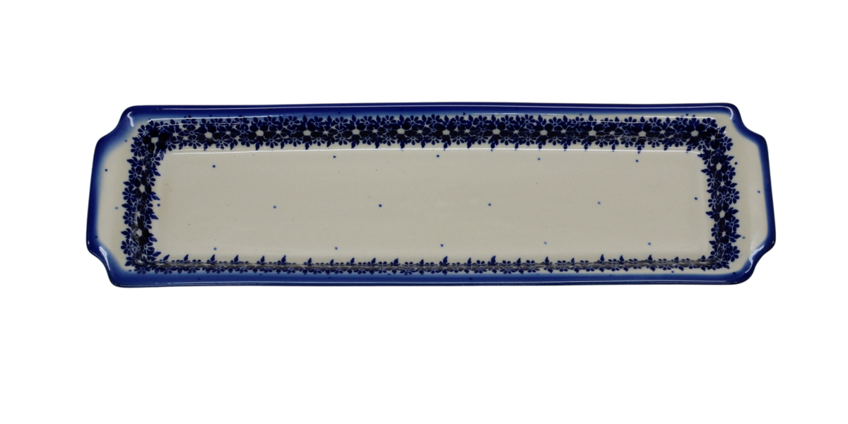 Oryginalny produkt ceramiki bolesławieckiej - tacka z uszami długa, ręcznie malowana w rodzinnej fabryce, oryginalnej ceramiki bolesławieckiej, ANDY CERAMIKA.