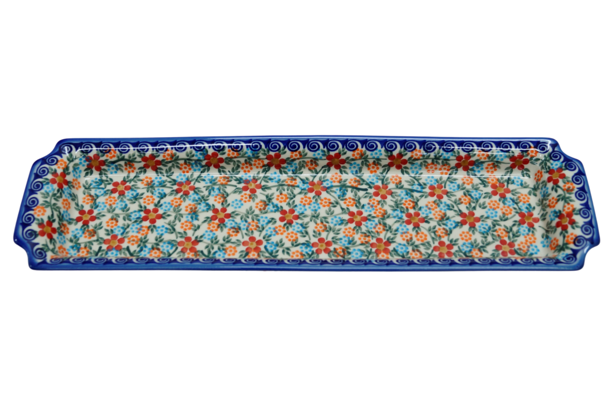 Oryginalny produkt ceramiki bolesławieckiej - tacka z uszami długa, ręcznie malowana w rodzinnej fabryce, oryginalnej ceramiki bolesławieckiej, ANDY CERAMIKA.