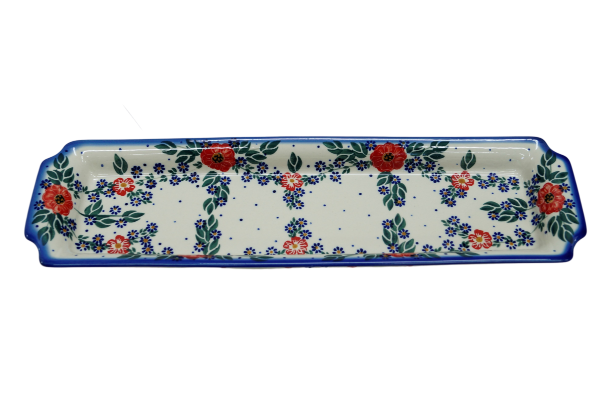 Oryginalny produkt ceramiki bolesławieckiej - tacka z uszami długa, ręcznie malowana w rodzinnej fabryce, oryginalnej ceramiki bolesławieckiej, ANDY CERAMIKA.