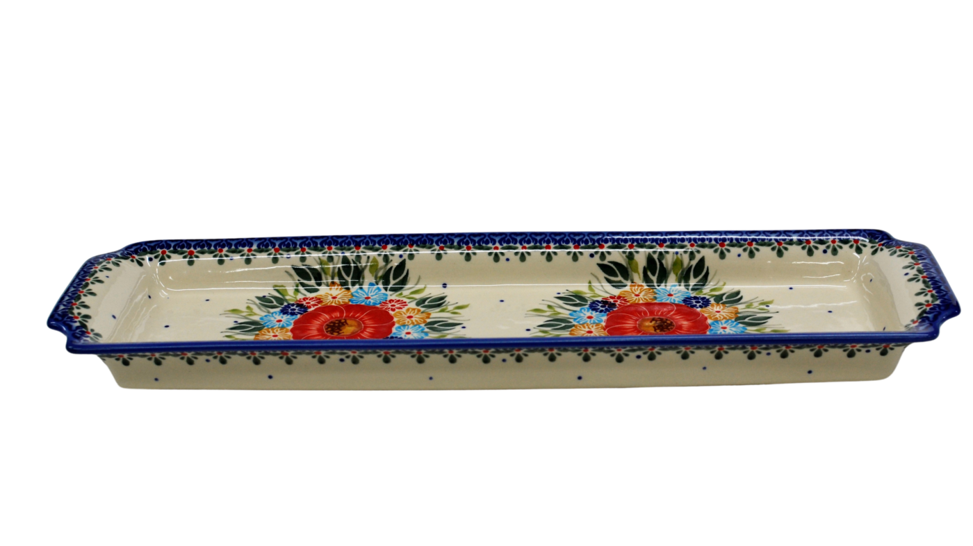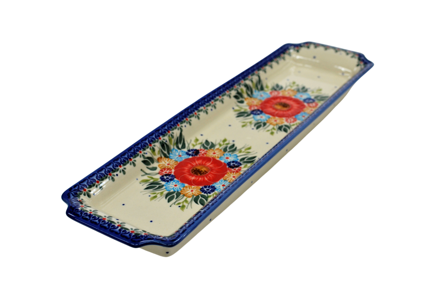 Oryginalny produkt ceramiki bolesławieckiej - tacka z uszami długa, ręcznie malowana w rodzinnej fabryce, oryginalnej ceramiki bolesławieckiej, ANDY CERAMIKA.