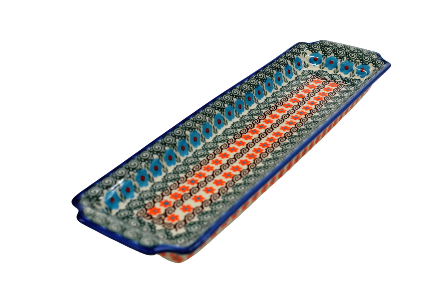 Oryginalny produkt ceramiki bolesławieckiej - tacka z uszami długa, ręcznie malowana w rodzinnej fabryce, oryginalnej ceramiki bolesławieckiej, ANDY CERAMIKA.