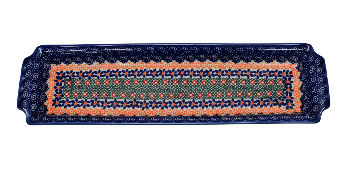 Oryginalny produkt ceramiki bolesławieckiej - tacka z uszami długa, ręcznie malowana w rodzinnej fabryce, oryginalnej ceramiki bolesławieckiej, ANDY CERAMIKA.