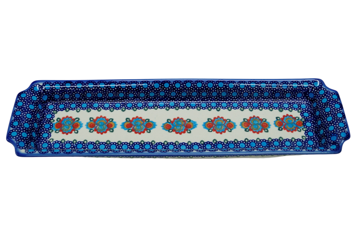 Oryginalny produkt ceramiki bolesławieckiej - tacka z uszami długa, ręcznie malowana w rodzinnej fabryce, oryginalnej ceramiki bolesławieckiej, ANDY CERAMIKA.
