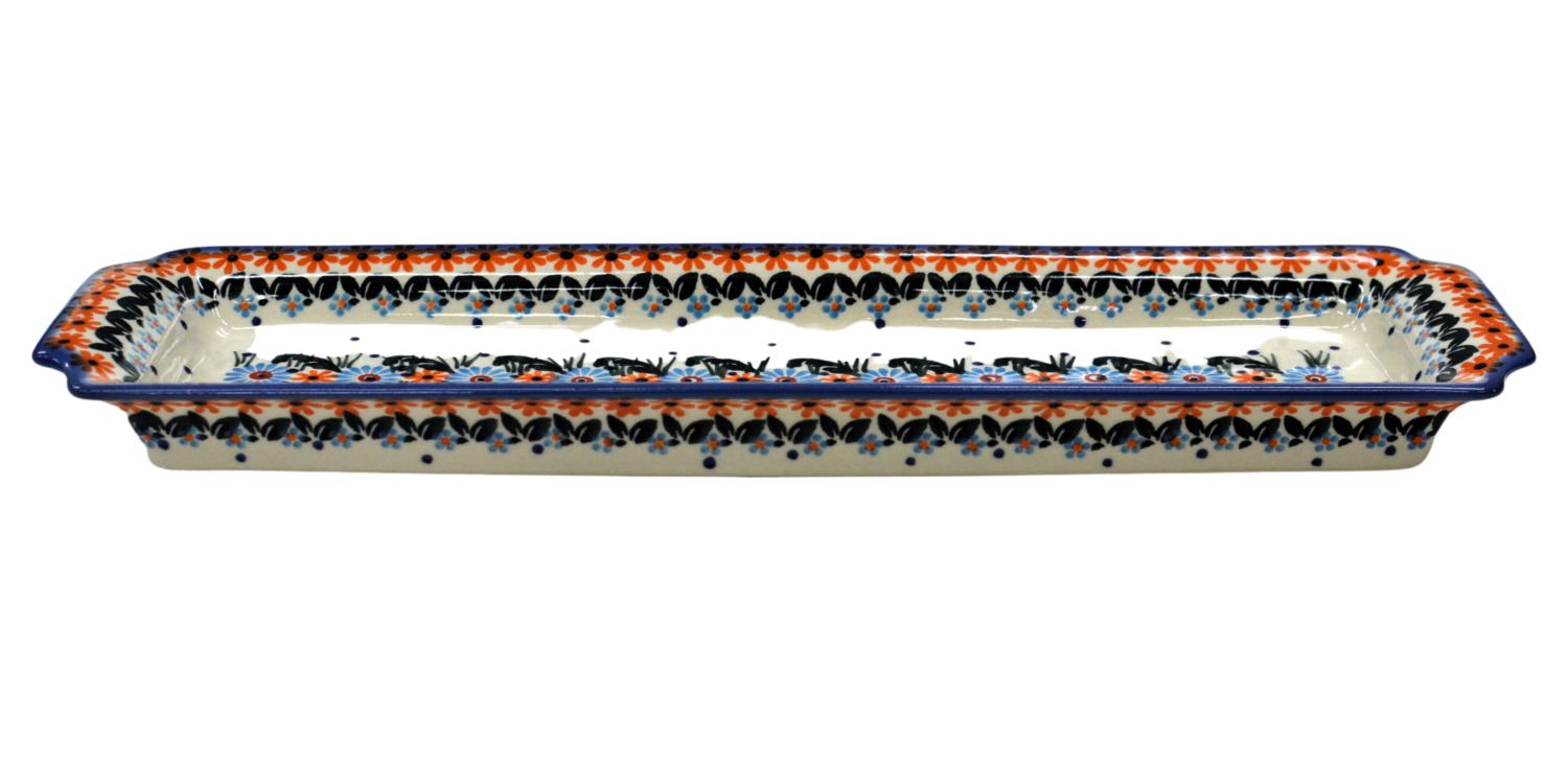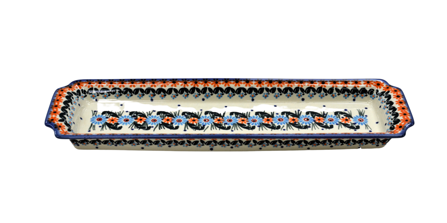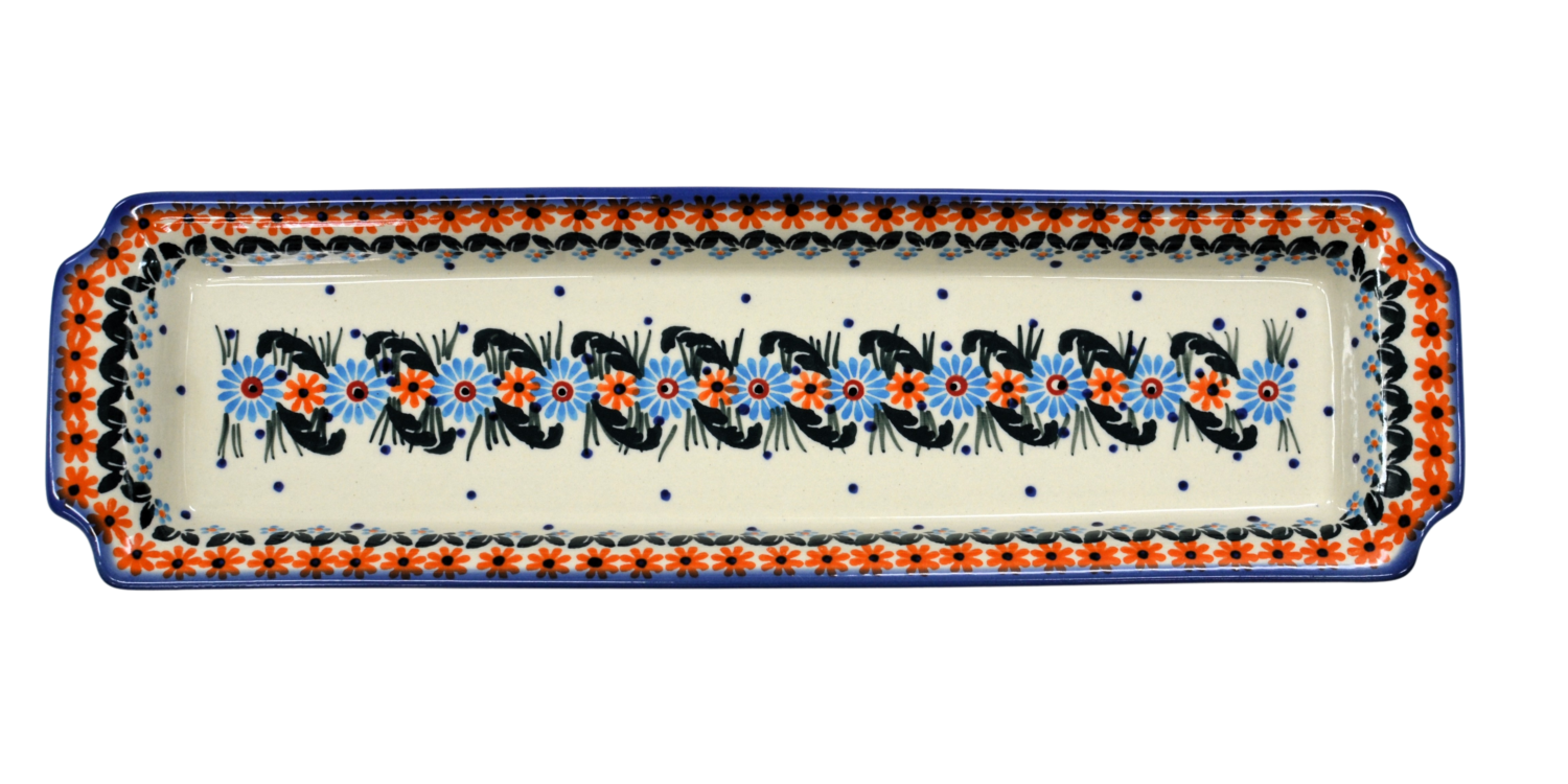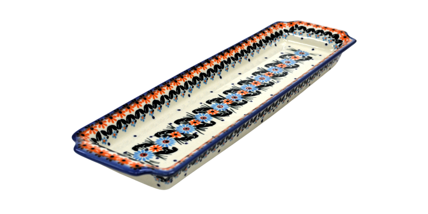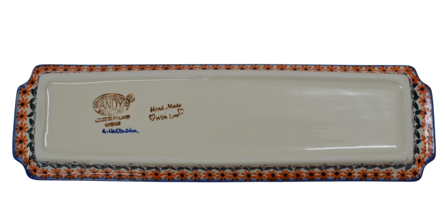 Oryginalny produkt ceramiki bolesławieckiej - tacka z uszami długa, ręcznie malowana w rodzinnej fabryce, oryginalnej ceramiki bolesławieckiej, ANDY CERAMIKA.