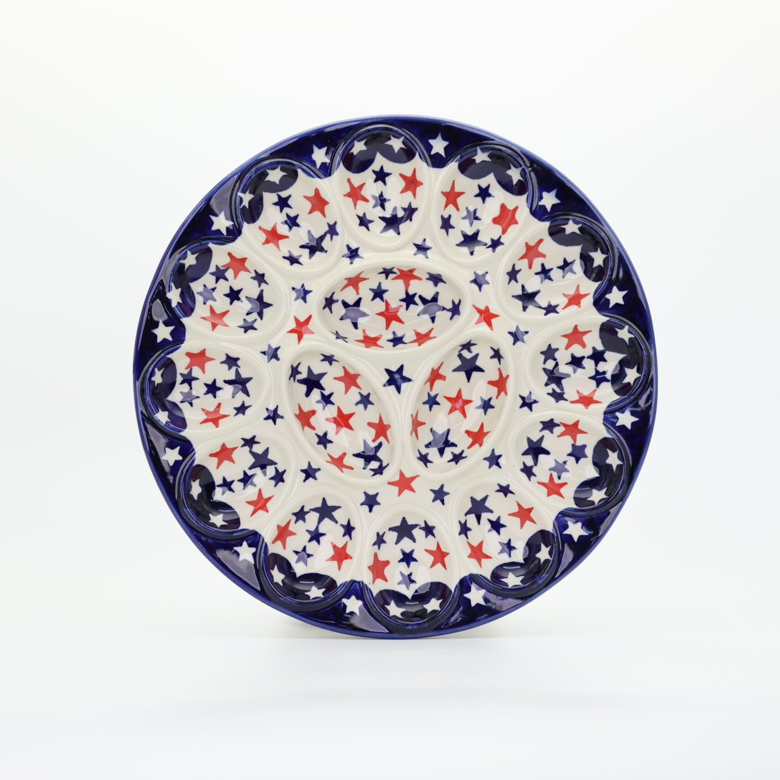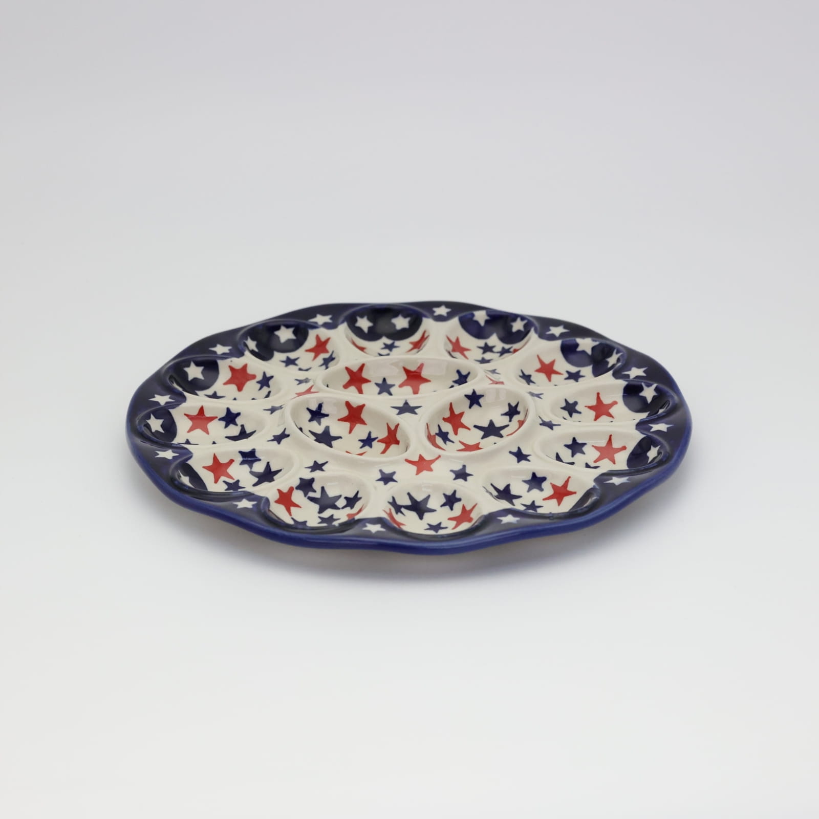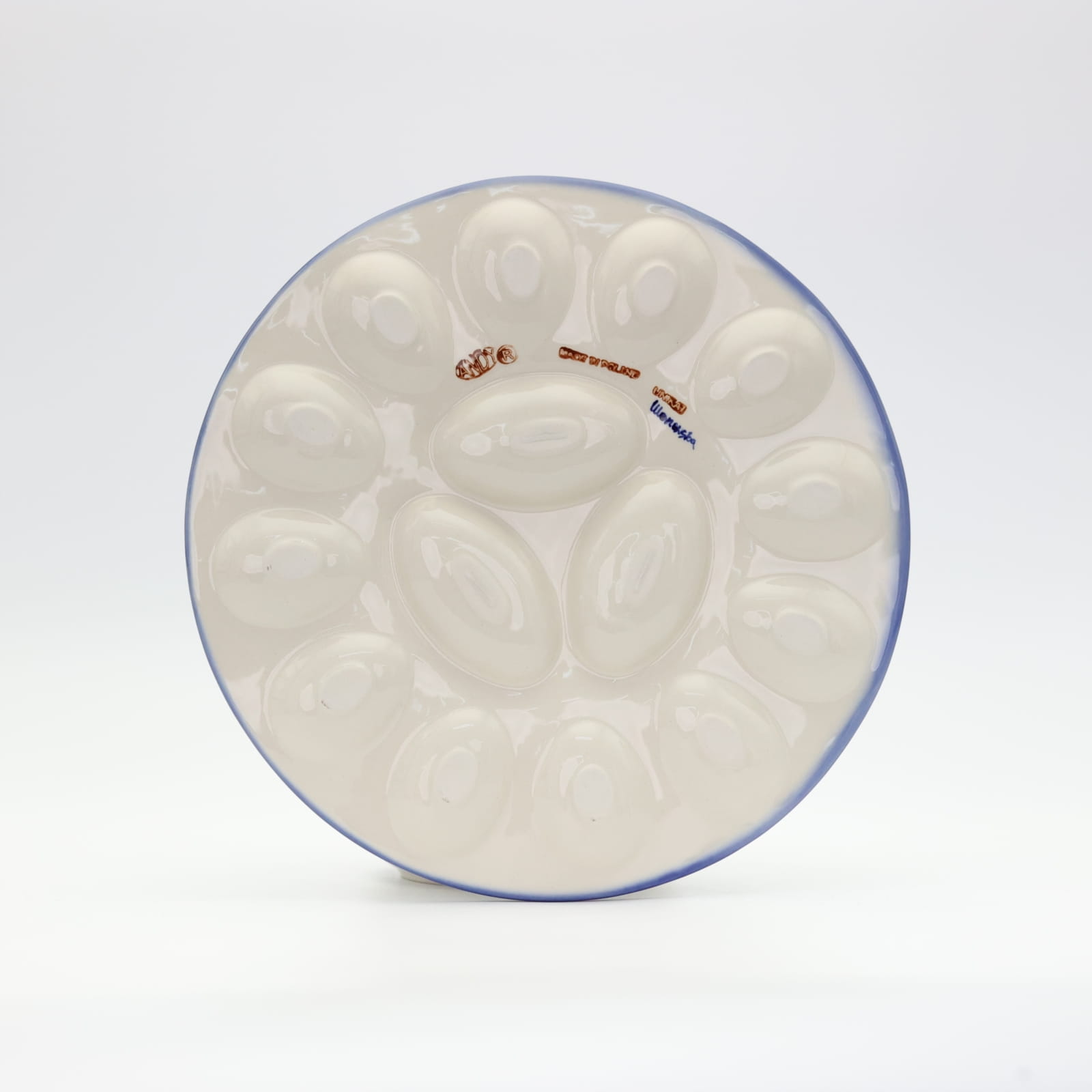 Kolekcja użytkowych talerzy do jaj, oryginalnej ceramiki bolesławieckiej, urzeka kształtami i pięknymi zdobieniami. Ta tacka na jaja jest idealna do serwowania potraw podczas przyjęć świątecznych i nie tylko. Gładka powierzchnia z wytrzymałą powłoką szkliwa, odporna na zmywanie w zmywarkach czy częste użytkowanie. Ceramika bolesławiecka to naczynia codziennego użytku.