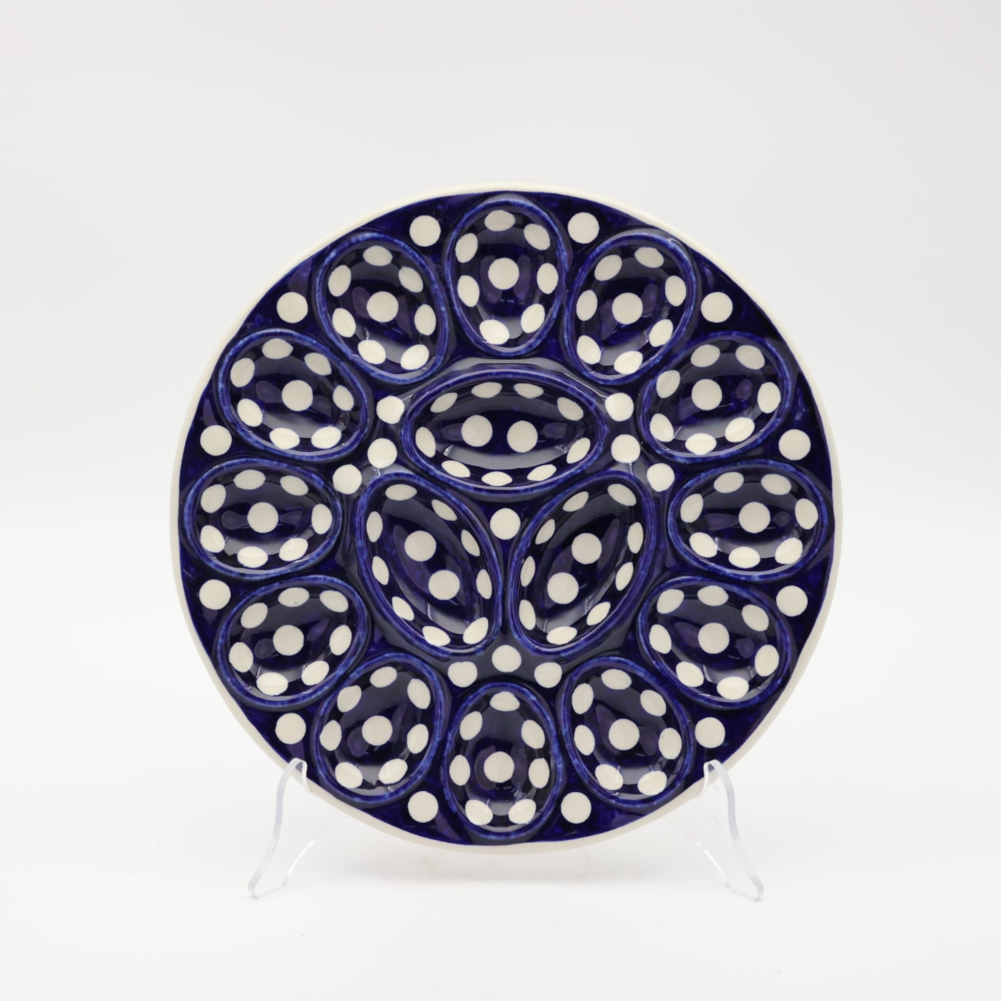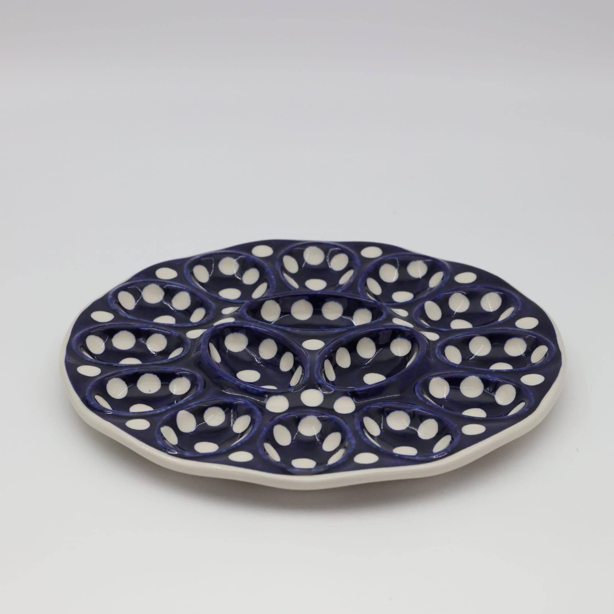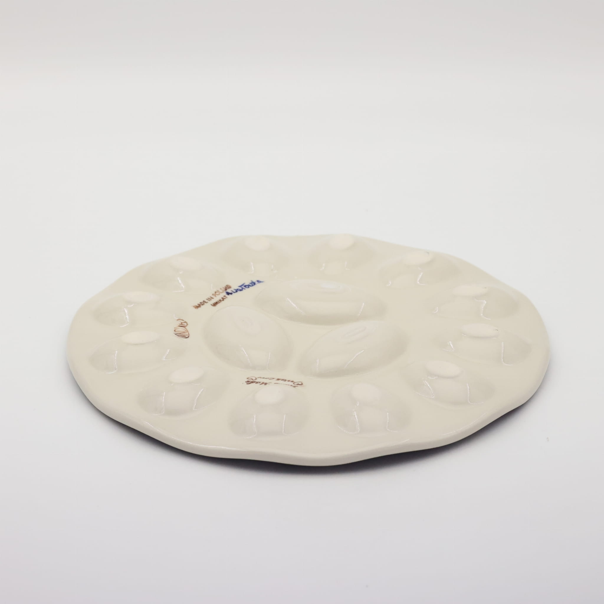 Kolekcja użytkowych talerzy do jaj, oryginalnej ceramiki bolesławieckiej, urzeka kształtami i pięknymi zdobieniami. Ta tacka na jaja jest idealna do serwowania potraw podczas przyjęć świątecznych i nie tylko. Gładka powierzchnia z wytrzymałą powłoką szkliwa, odporna na zmywanie w zmywarkach czy częste użytkowanie. Ceramika bolesławiecka to naczynia codziennego użytku.